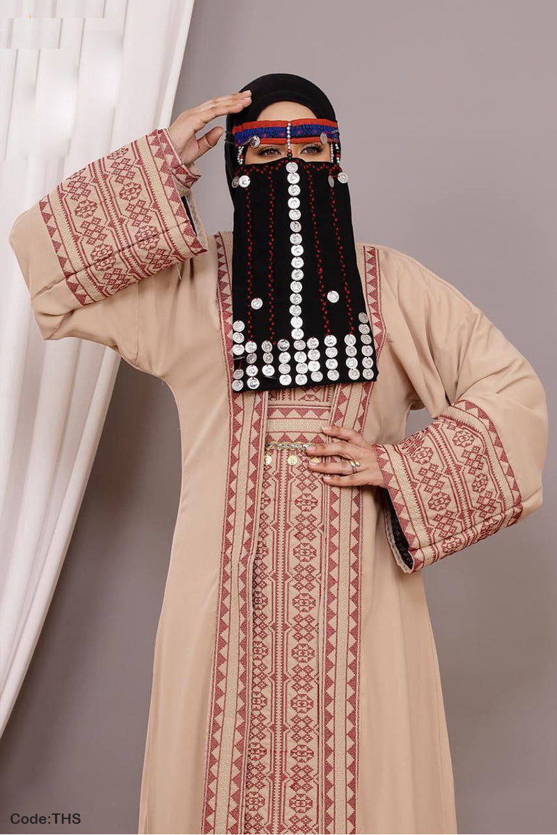 • العباية بتصميم عسيري مكونه من بيزك مطرز وعباية مفتوحه وحزام
