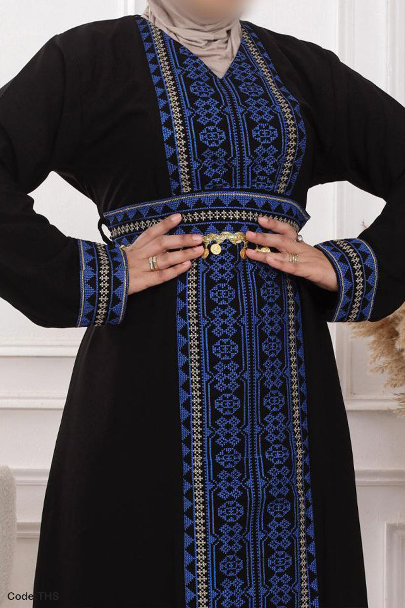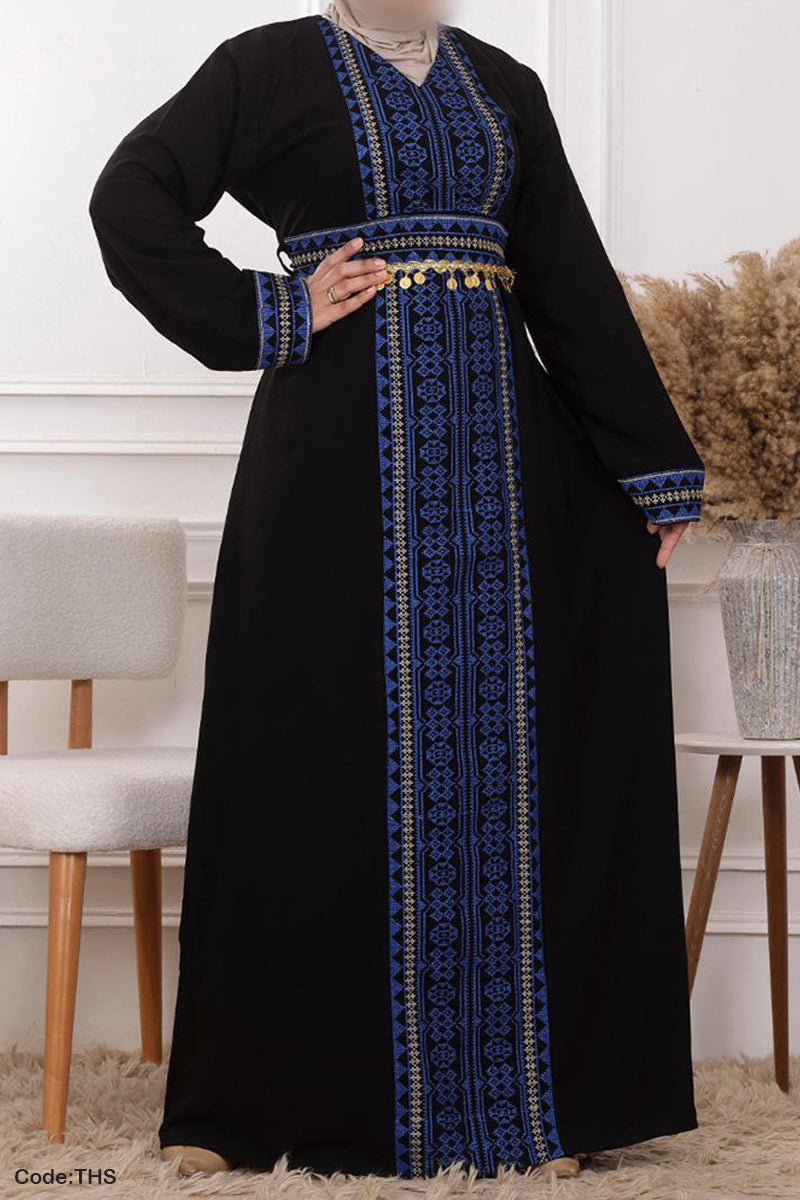 - العباية بتصميم عسيري مكونه من بيزك مطرز وعباية مفتوحه وحزام