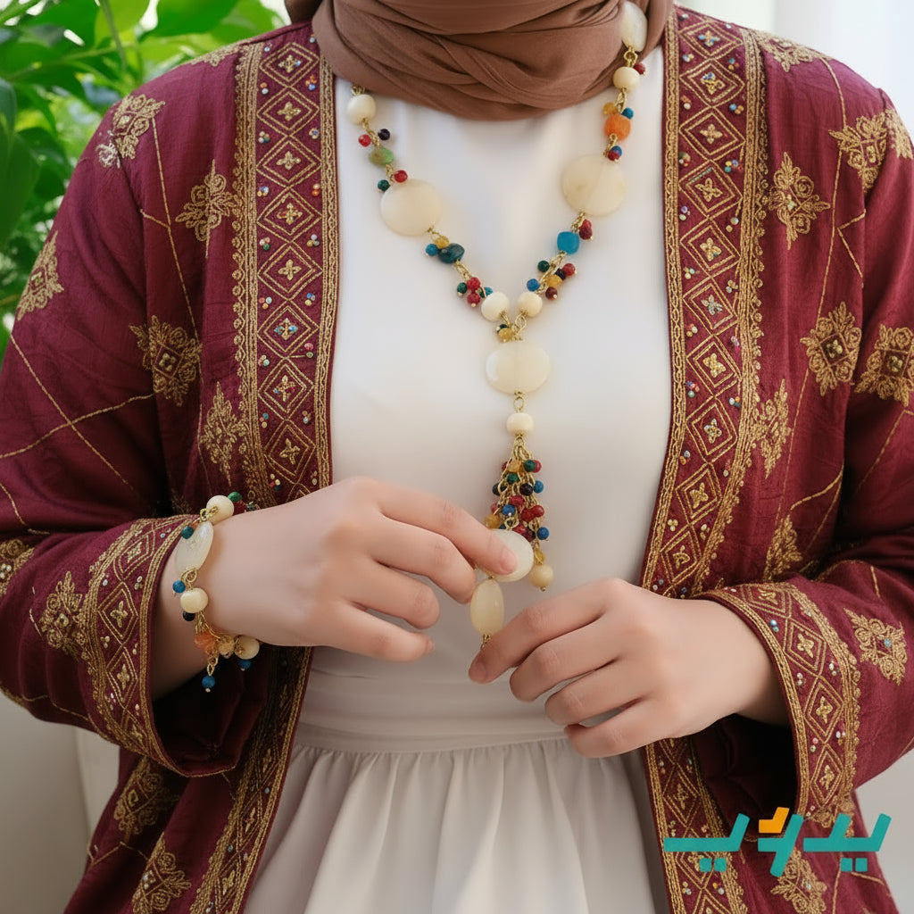 خلي ذوقك يبان مع طقم اكسسوارات صيفية من يدوي، طقم صيفي أنيق، خفيف، ويلبّق على كل لبسة من غير ما تتكلّفين، اطلبيه الآن وتميّزي كل يوم.
