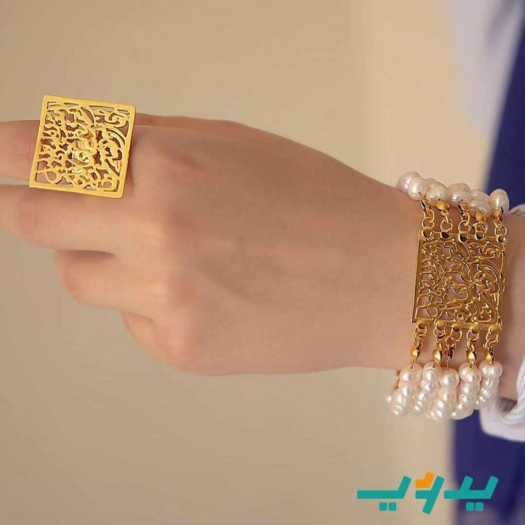 طقم حياء بحجر اللؤلؤ الطبيعي – مطلي بماء الذهب