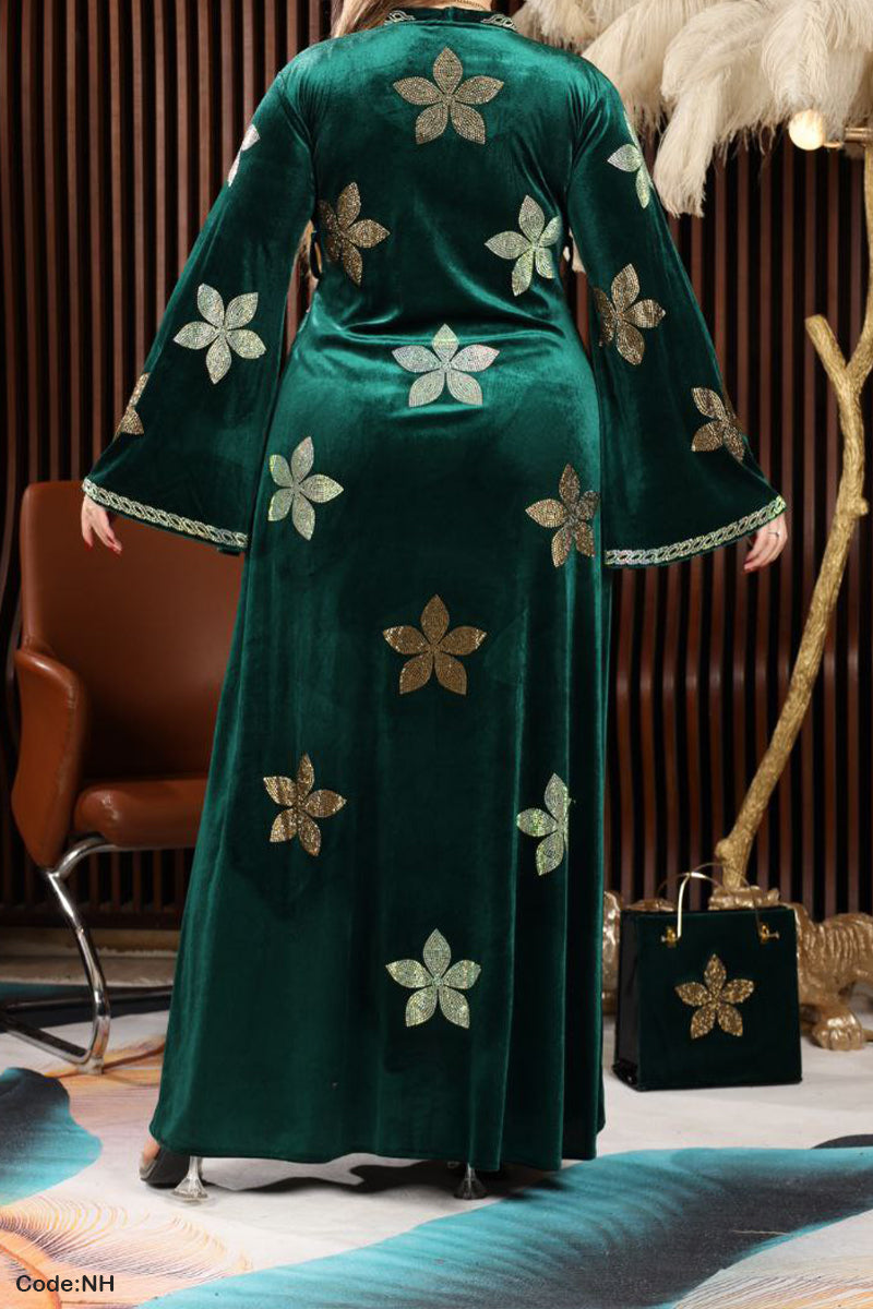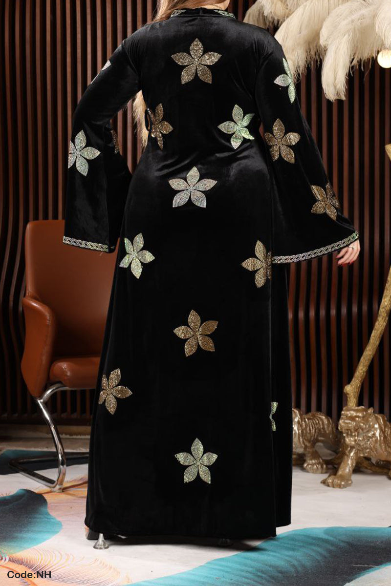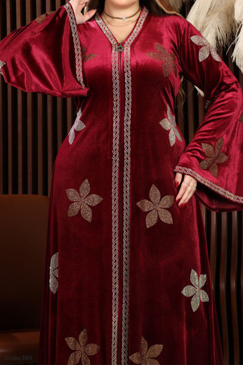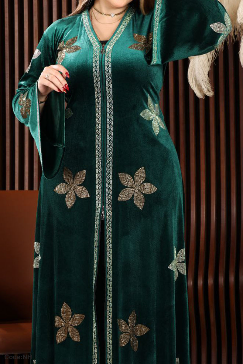 • عباية مكونة من ثلاث قطع (عباية بكم مفتوحه من الامام بسوسته - بنطال من نفس الخامه والتطريز - وحقيبه)