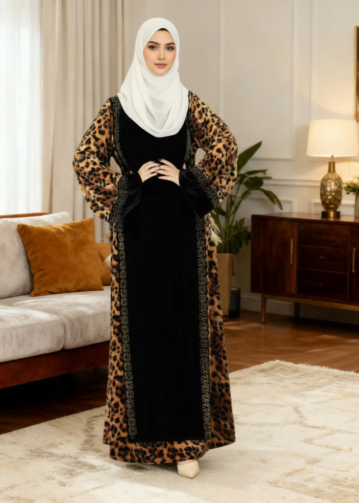 جلابية جلد النمر - قطيفة مخمل ناعم شتاء 2025
