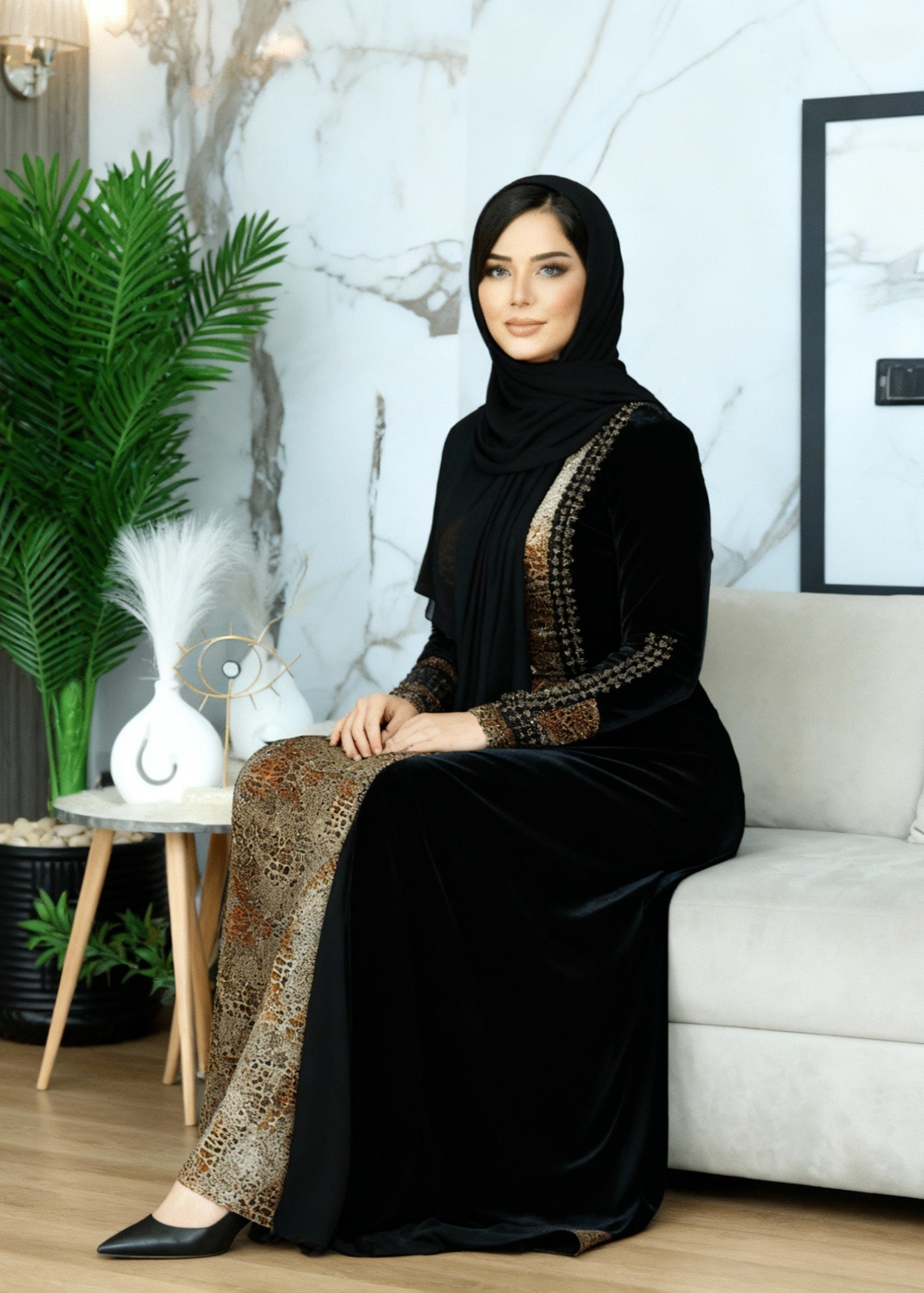 جلابية جلد النمر - قطيفة مخمل ناعم شتاء 2025