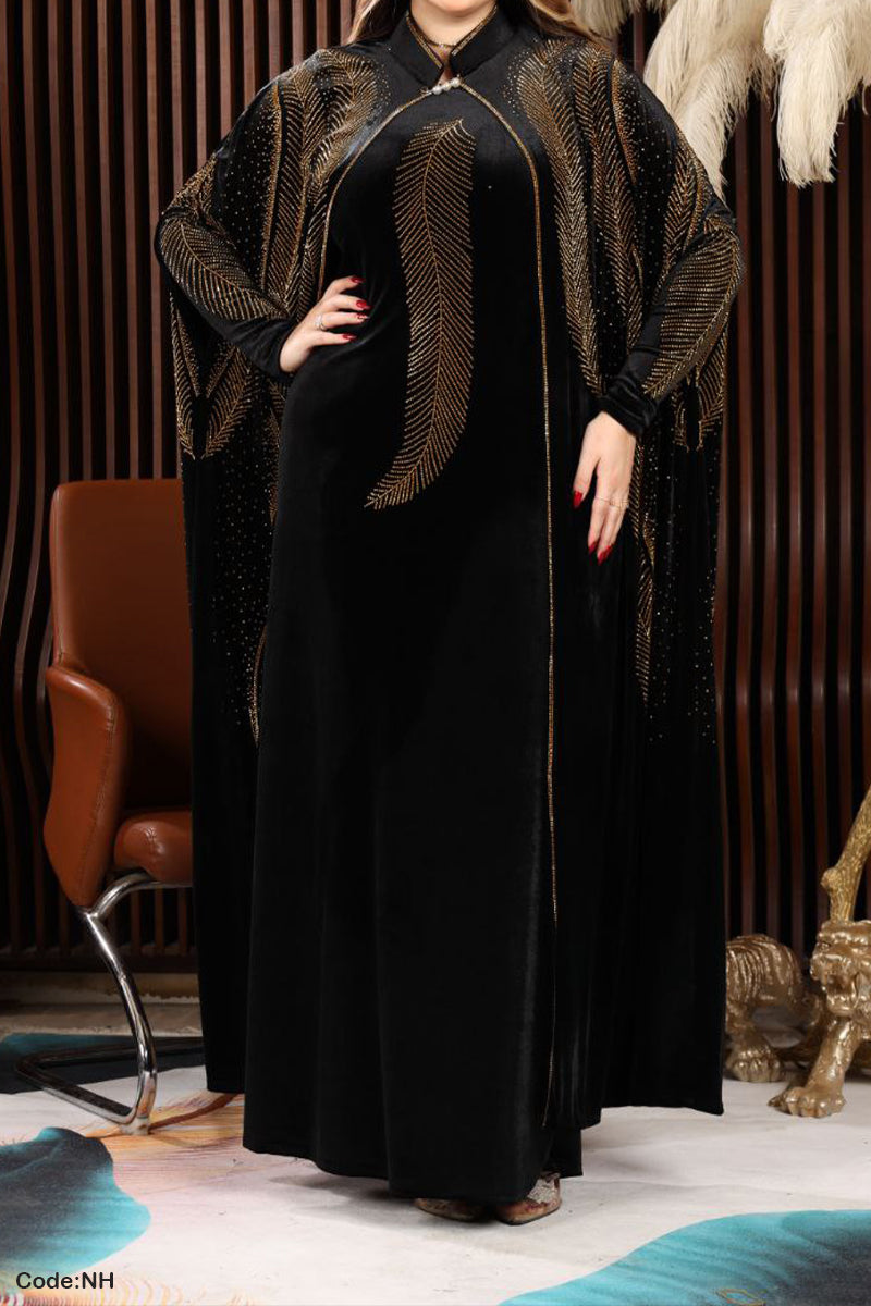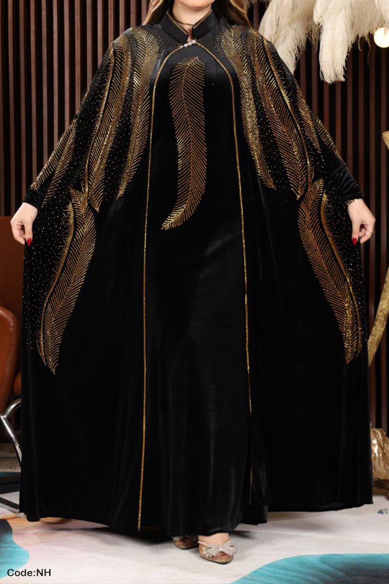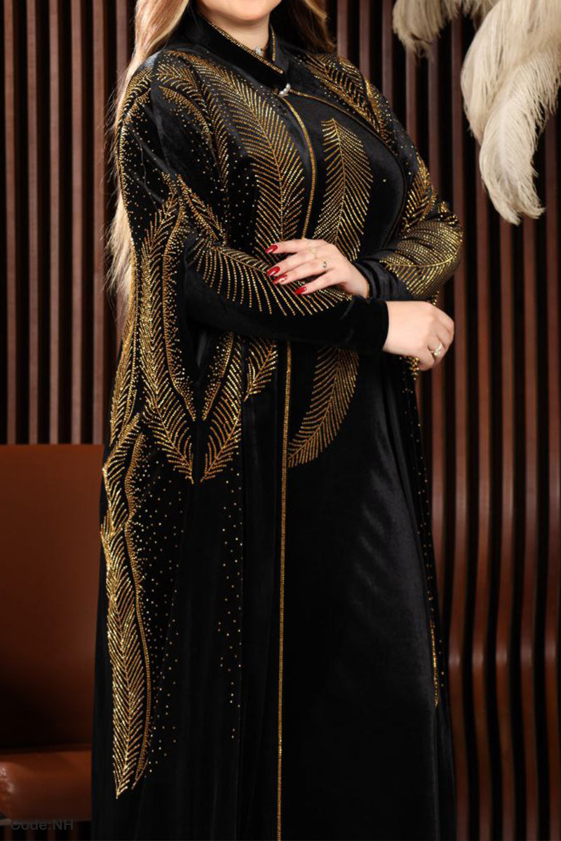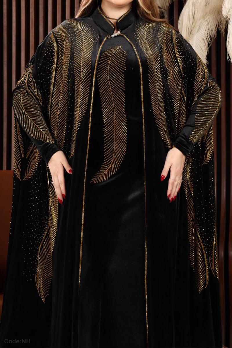 عباية ملكية تطريز الريشة - مخمل شتاء 2026