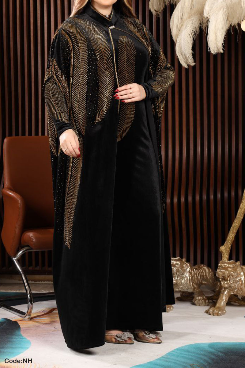 - عباية مكونة من قطعتين بيزك بكم وقفطان مخمل مطرز بالكامل