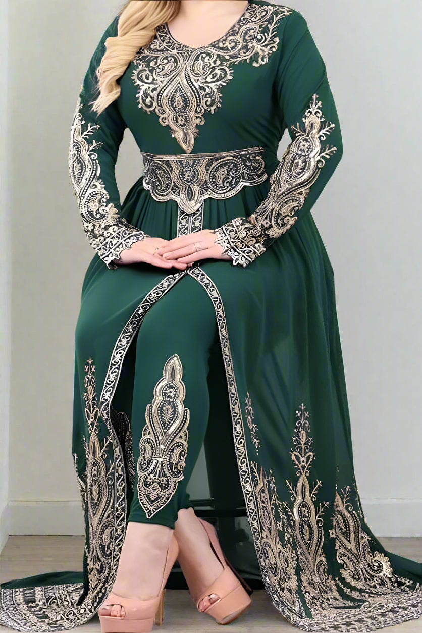 هل تبحثين عن إطلالة ملكية تجمع بين الفخامة والراحة؟ إليكِ قفطان قطعتين مطرز المميز من يدوي، فهو مصنوع من شيفون فاخر وبنطلون من الفيبرون، مزخرف بتطريز عالي الجودة، ليضفي عليكِ لمسة من الأناقة والفخامة في كل مناسبة، فمع تصميمه المميز المكون من قطعتين، القفطان والبنطلون بتطريز متناسق، ستشعرين بالراحة والجمال في كل لحظة.