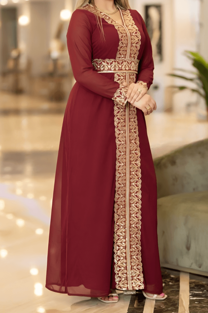 لو كنتِ من اللي يفضلون اللمسة الناعمة مع لمعة خفيفة، جلابية شيفون مطرزة هذه بتكون خيارك المثالي، فإن تصميمها يجمع بين الراحة والفخامة، شغل الكمبيوتر الدقيق مع لمسات الترتر يعطي لمعة راقية، والتبطين بخامة روزيتا يضمن لك نعومة تامة ولبس مريح طول اليوم.