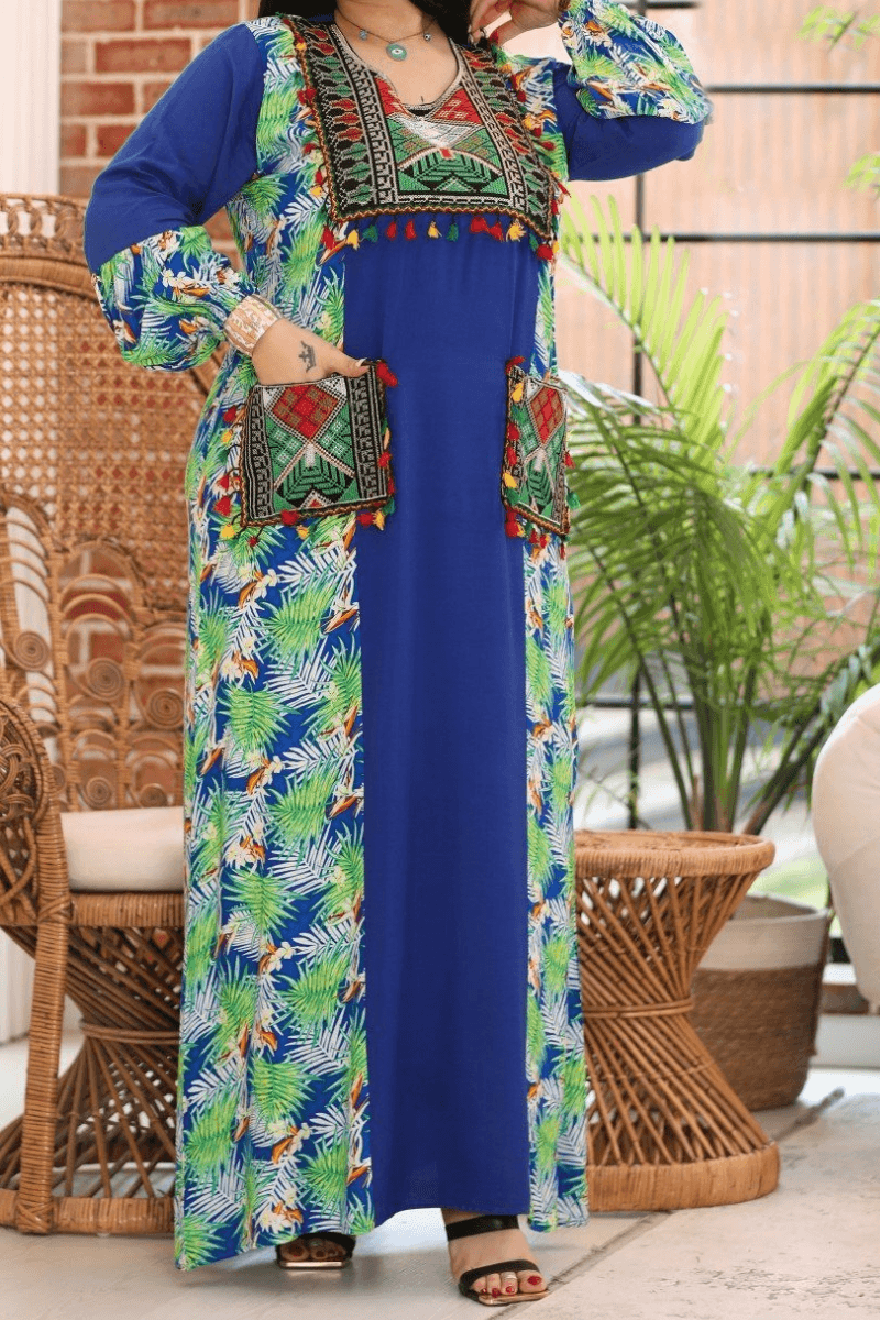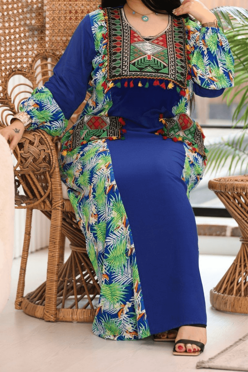 جلابية حلا مزخرفة بقماش مشجر - قطن