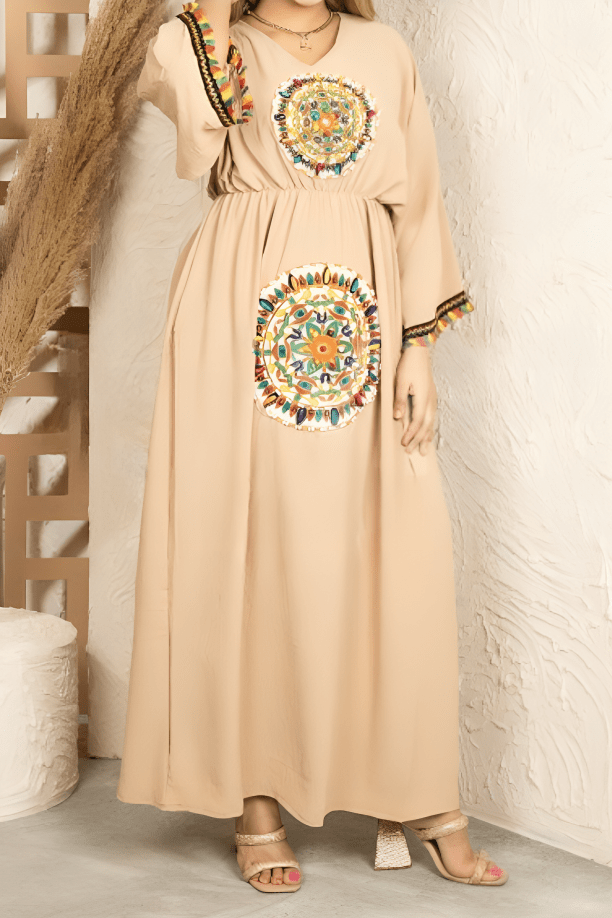 - التطريز على الصدر و في منتصف الجلابية و على الاكمام