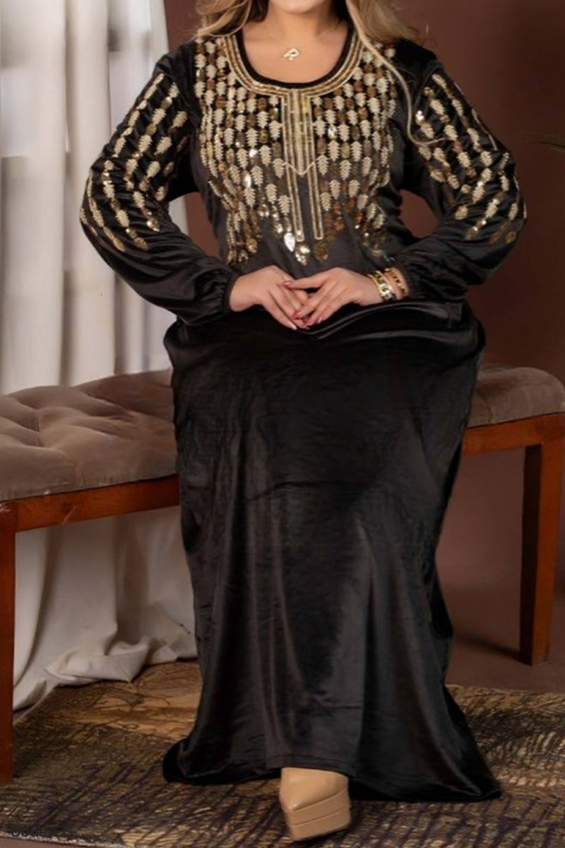• التطريز : مطرزة بخيوط حرير ذهبية وترتر ثابت