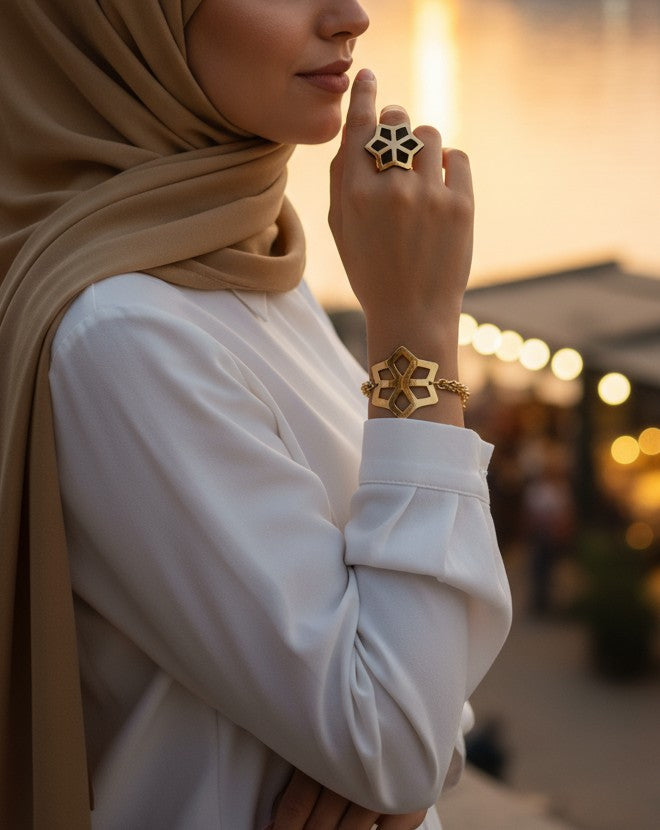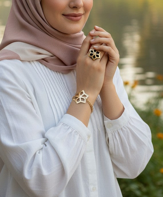 • الاسورة والخاتم قابلين للتوسيع والتضييق