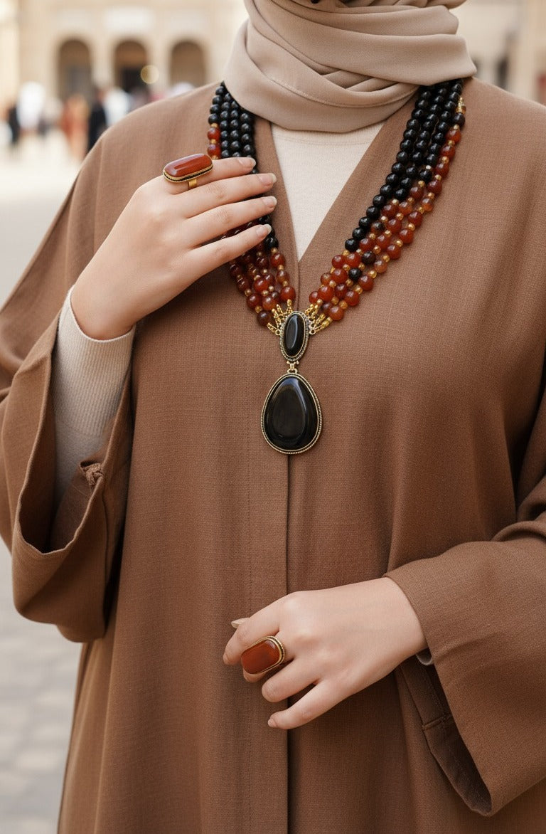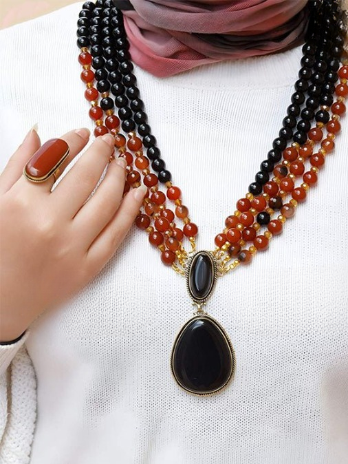 طقم عهد بحجر المرجان الأحمر – مطلي بماء الذهب