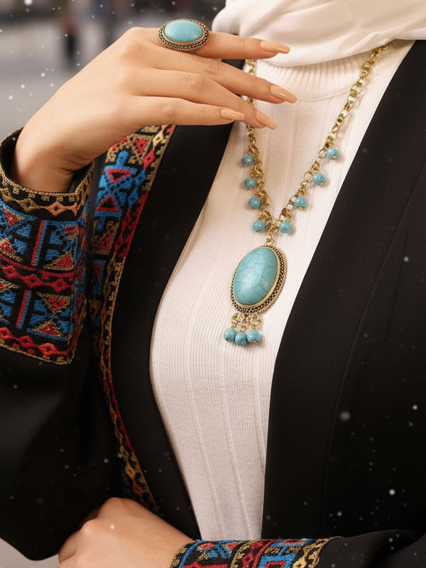 طقم عهد بحجر المرجان الأحمر – مطلي بماء الذهب