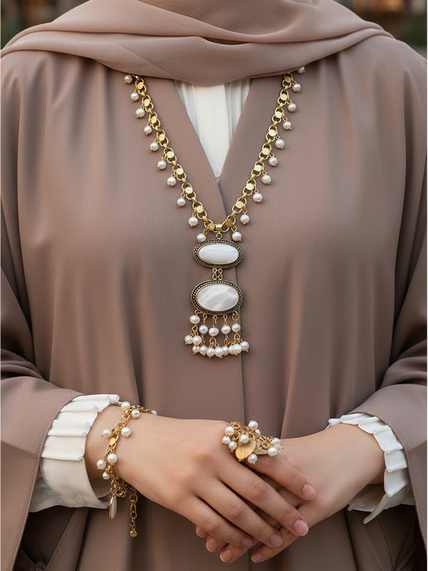طقم عهد بحجر المرجان الأحمر – مطلي بماء الذهب