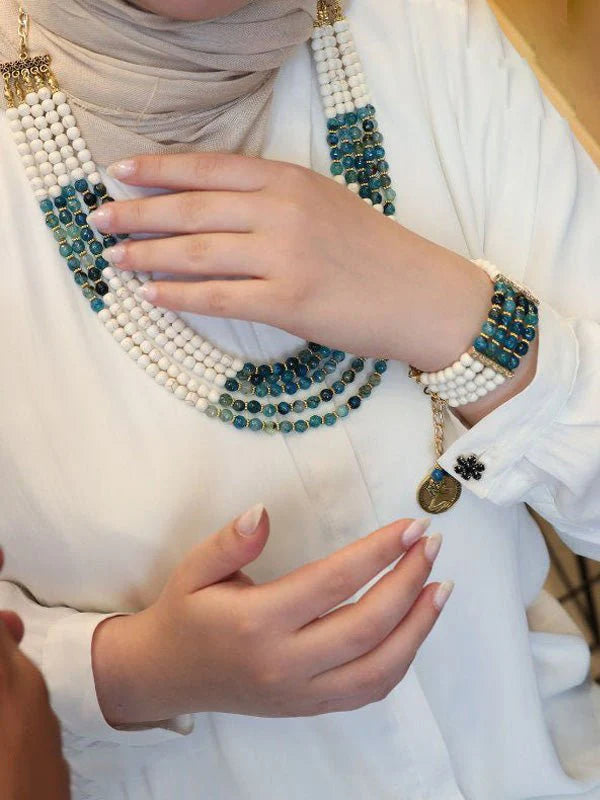 طقم عهد بحجر المرجان الأحمر – مطلي بماء الذهب