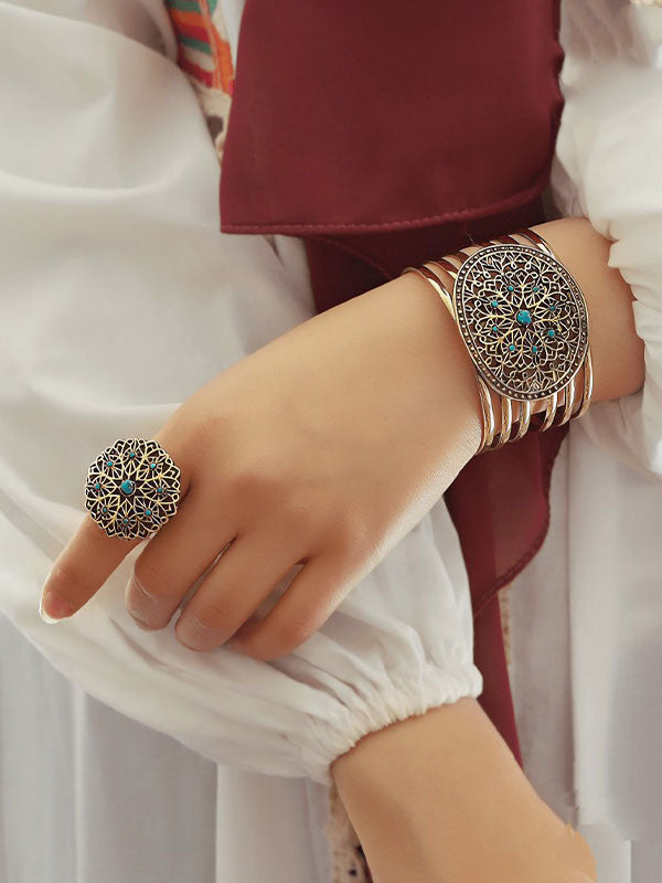 طقم عهد بحجر المرجان الأحمر – مطلي بماء الذهب