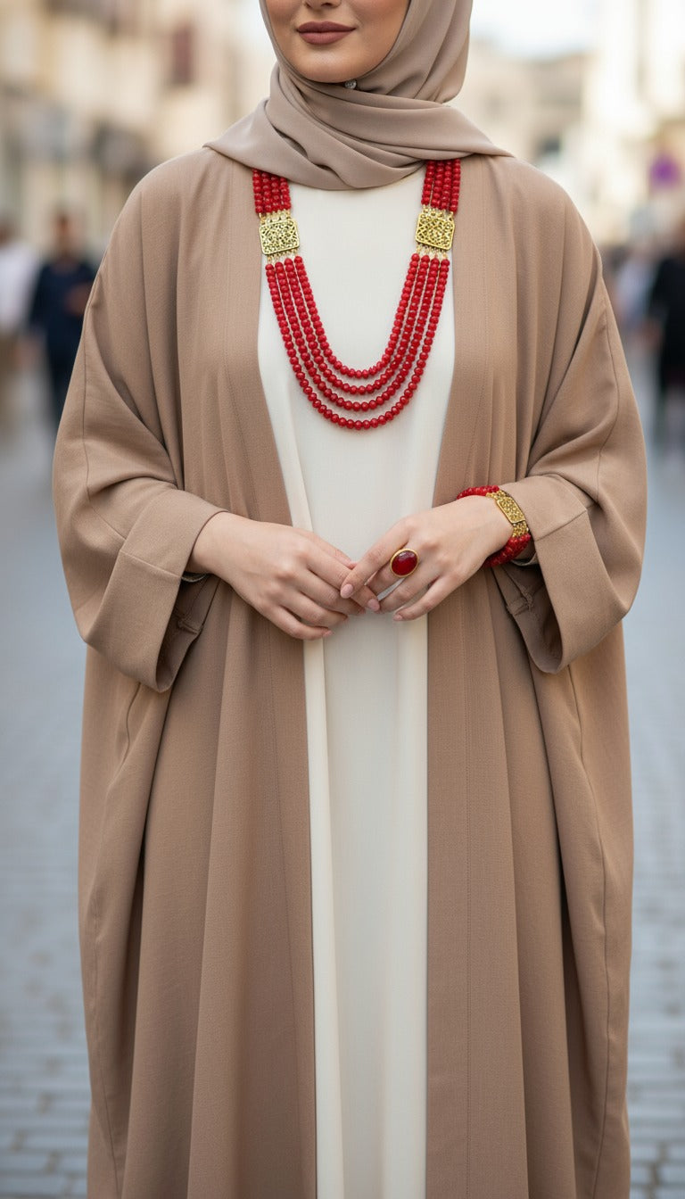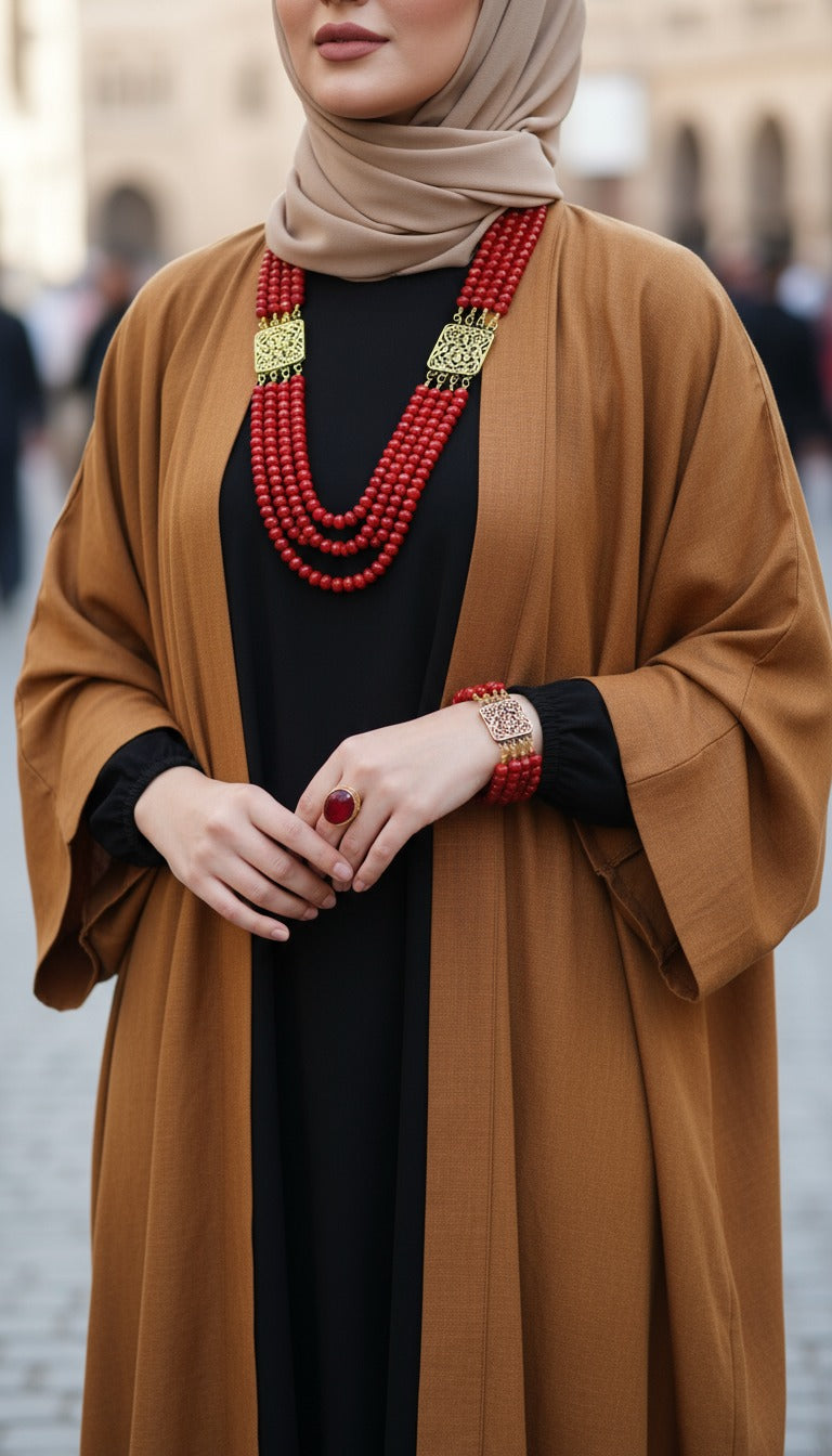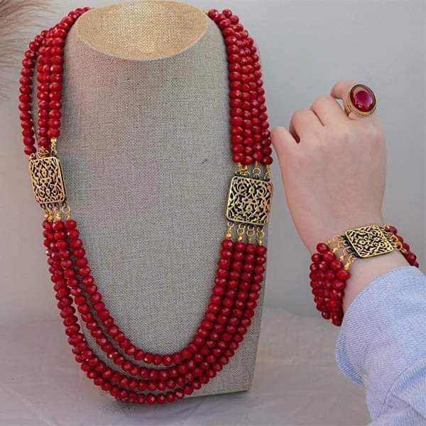 طقم عهد بحجر المرجان الأحمر – مطلي بماء الذهب