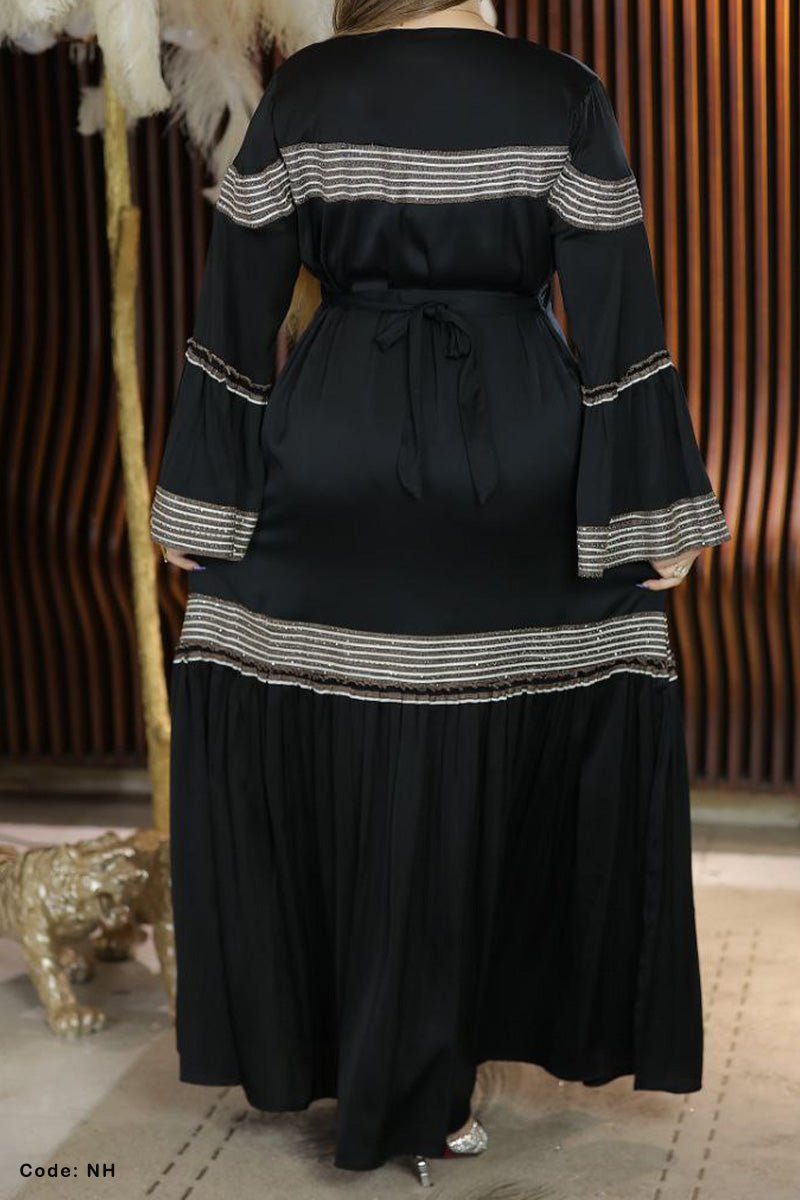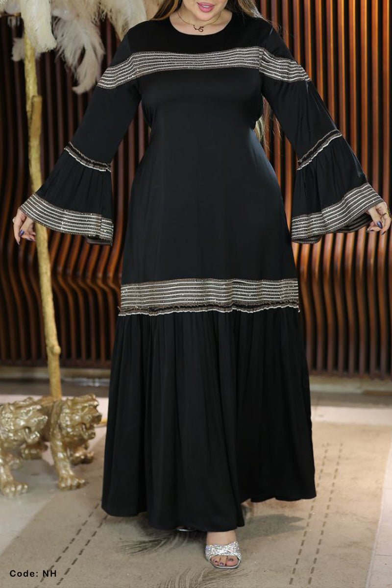 - عباية فخمة باكمام واسعه وبحزام جانبي متصل لضبط المقاس