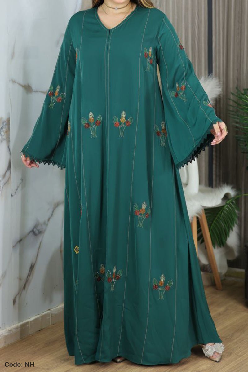 - التطريز علي الصدر والاكمام وبطول العباية من الامام والخلف
