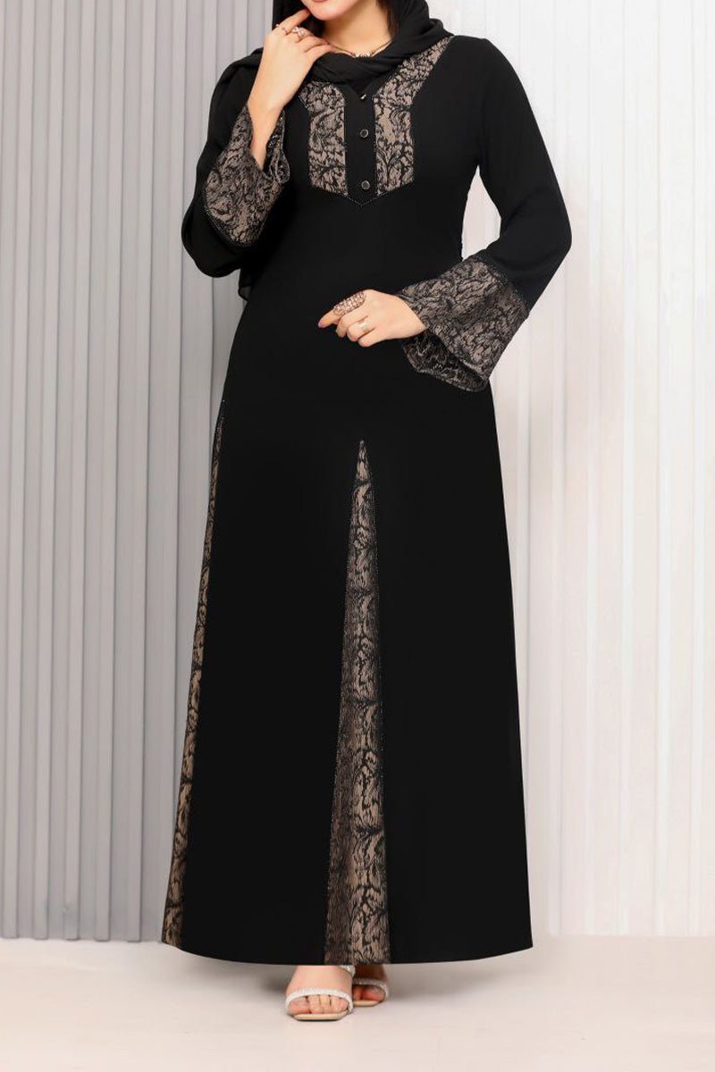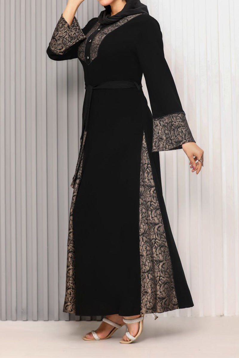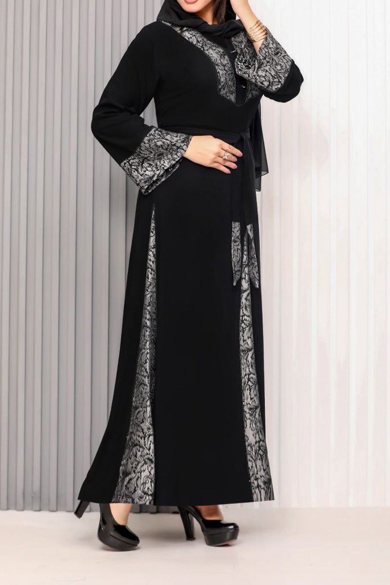 - عباية ذات اكمام واسعه وومطعمة بقماش منقوش