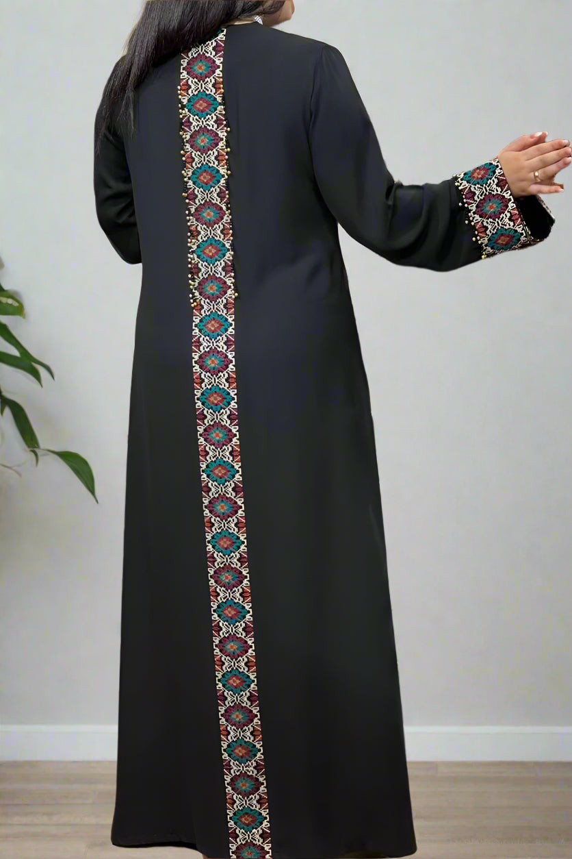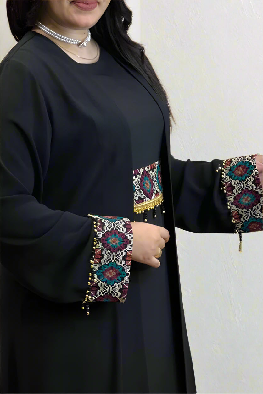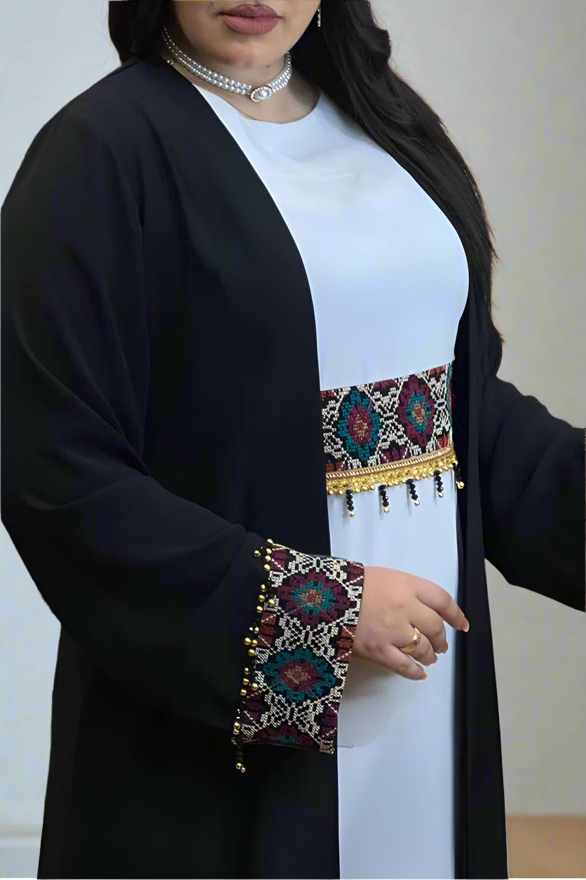 • التطريز علي  الصدر والاكمام وبطول العباية من الامام