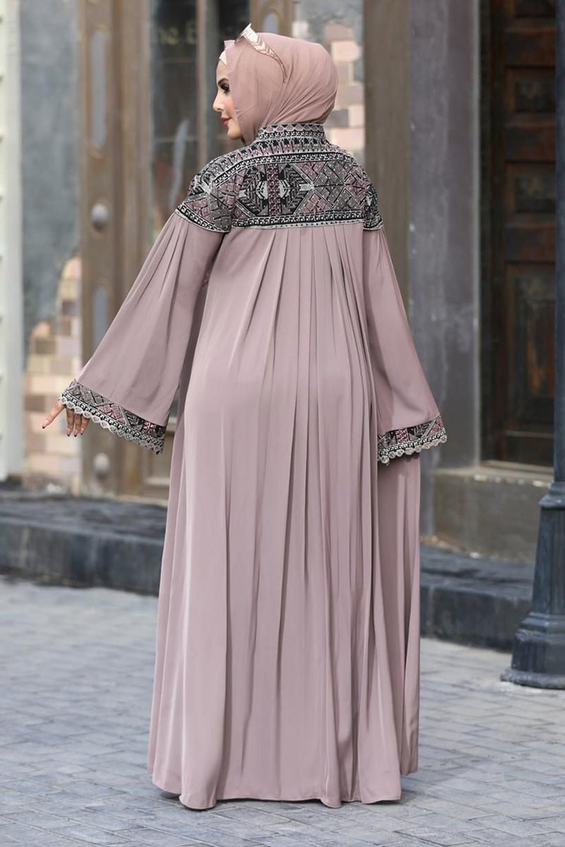 - التطريز كثيف علي الصدر والاكمام