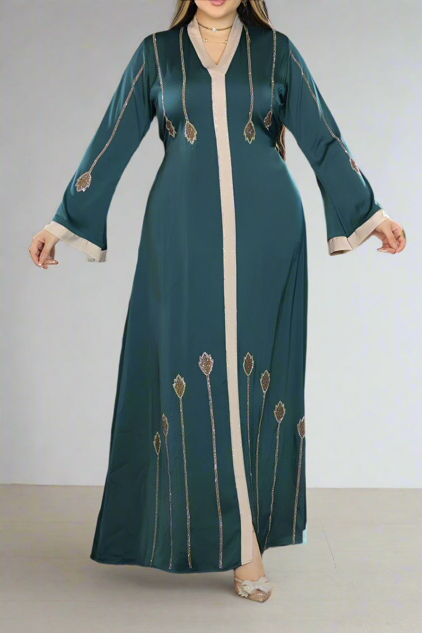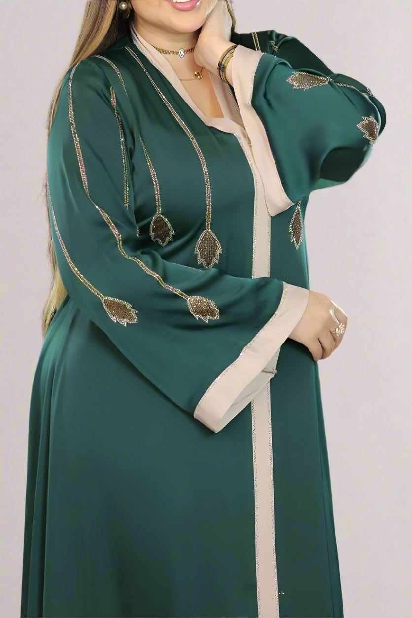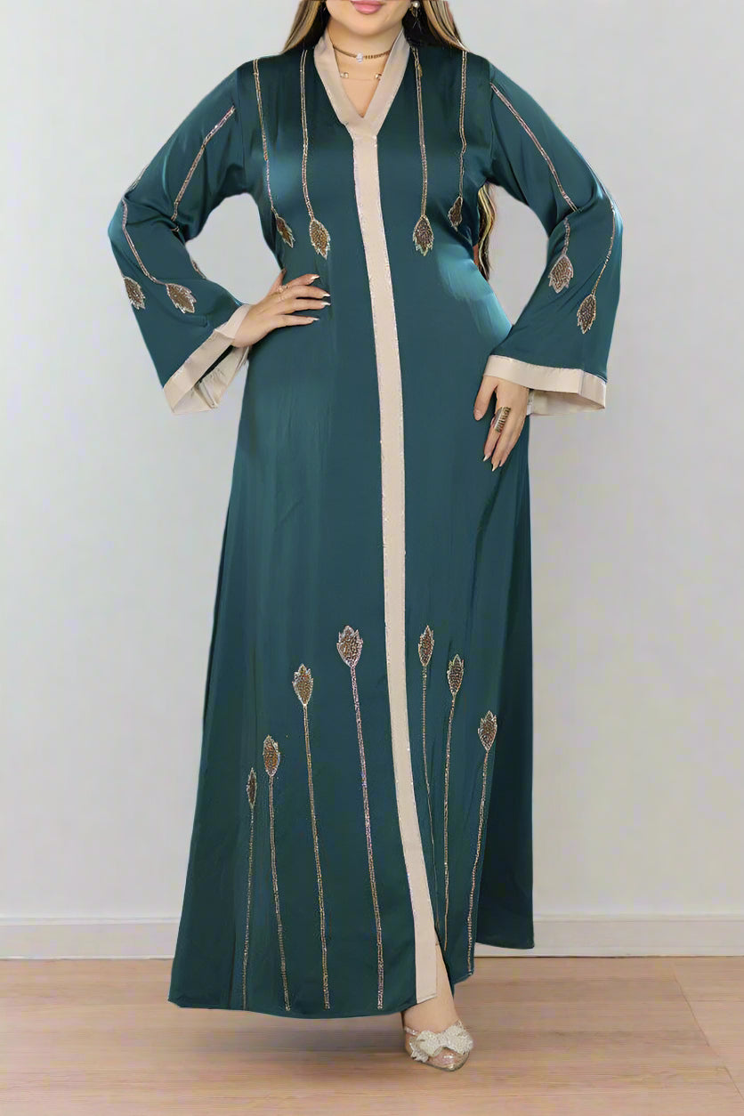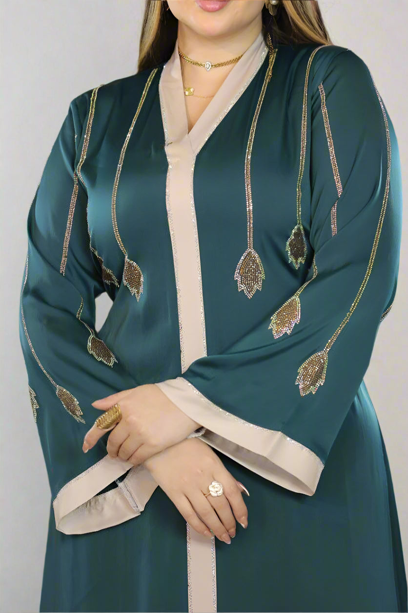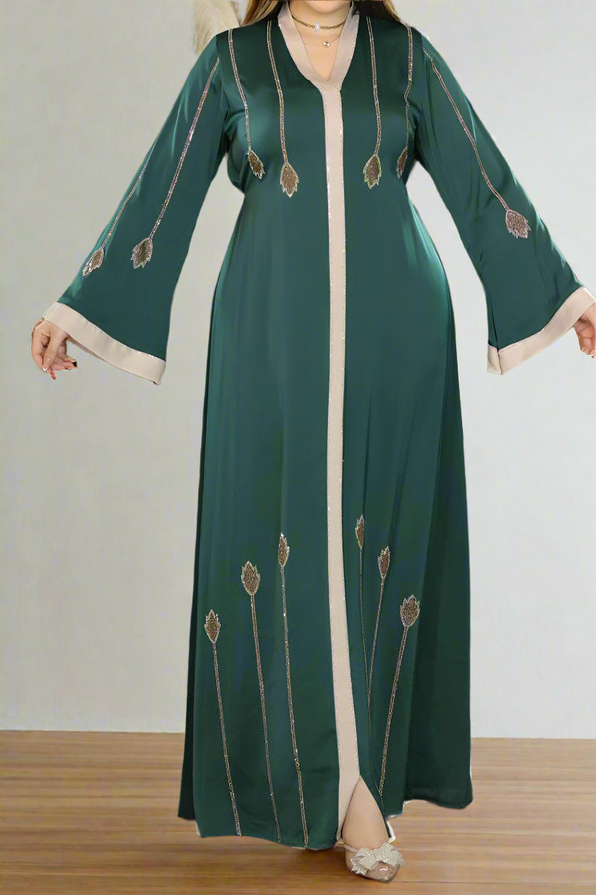 - التطريز علي الصدر والاكمام وبطول العباية بالكامل