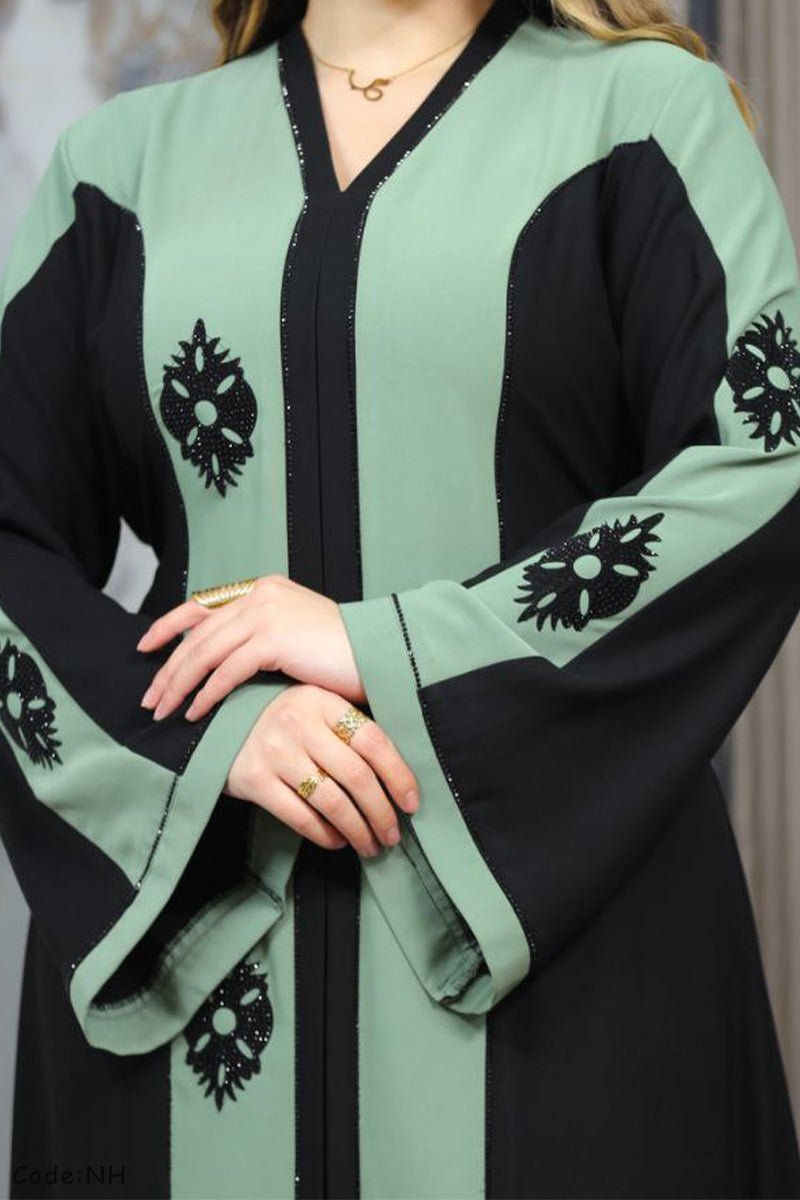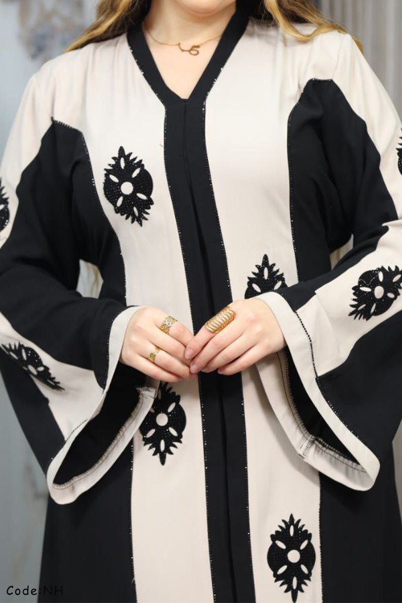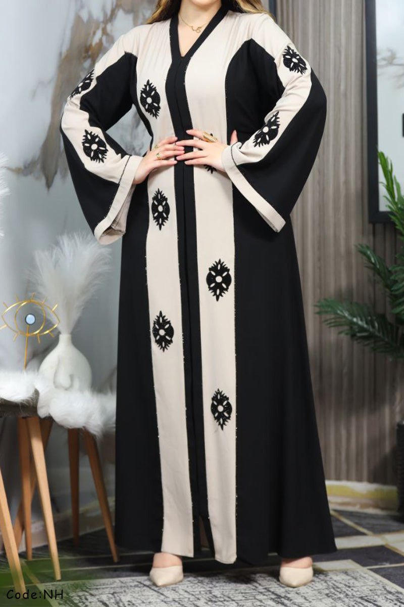 - العباية مطرزة علي الصدر والاكمام وبطول العباية من الامام