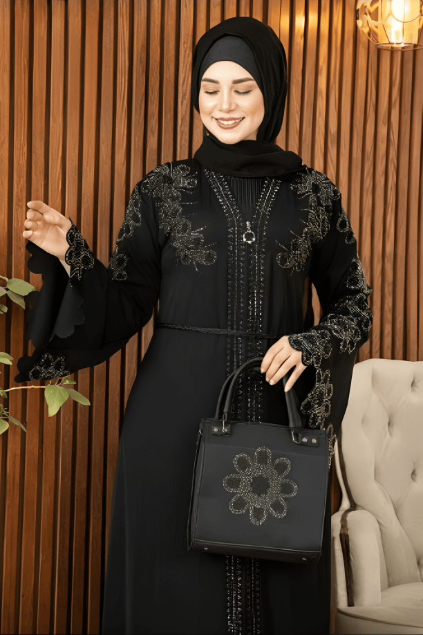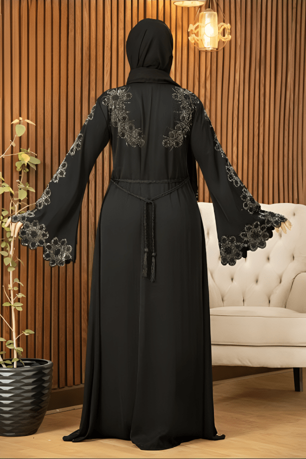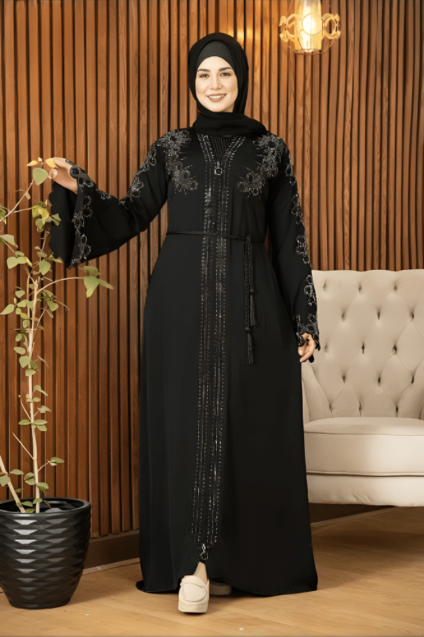 - التطريز علي الصدر والاكمام والضهر وبطول العباية