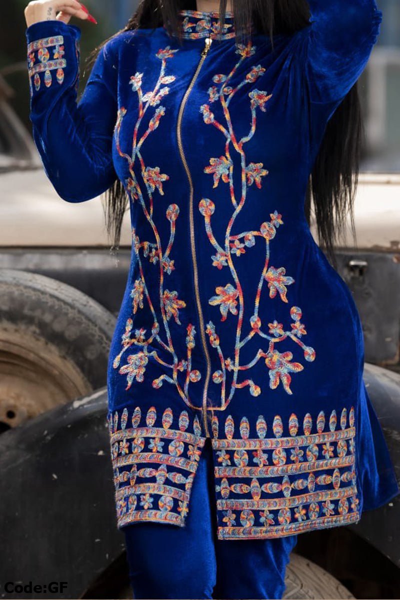 - التطريز علي الصدر والاكمام وعلي اخر البنطلون