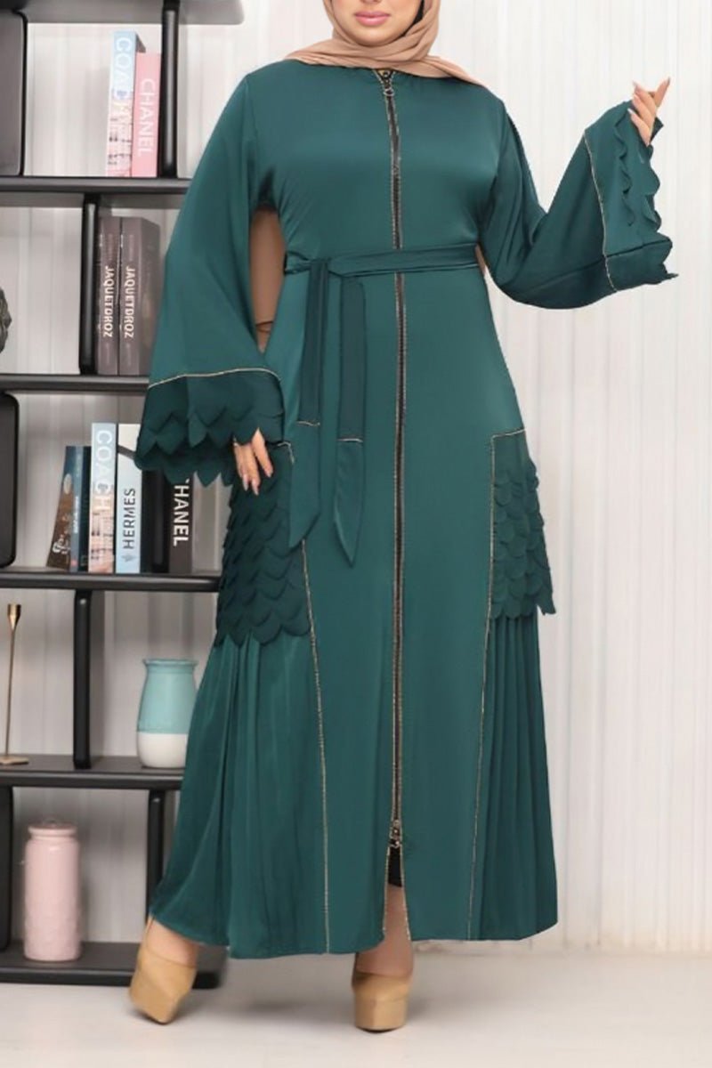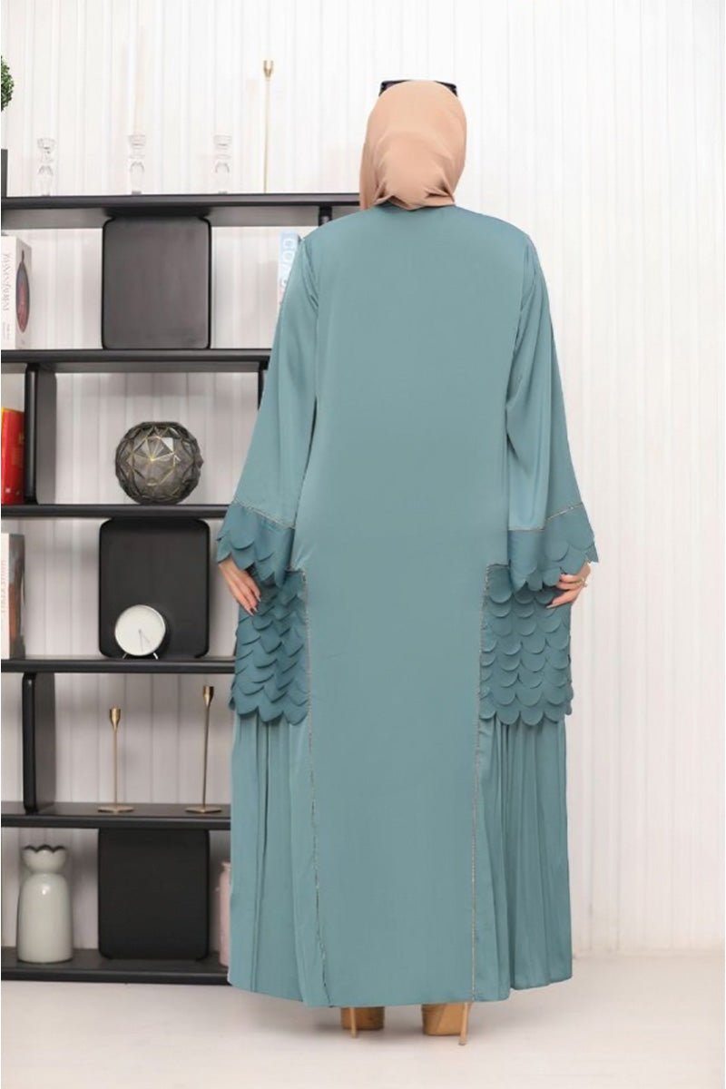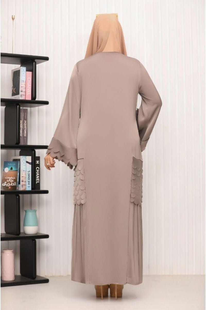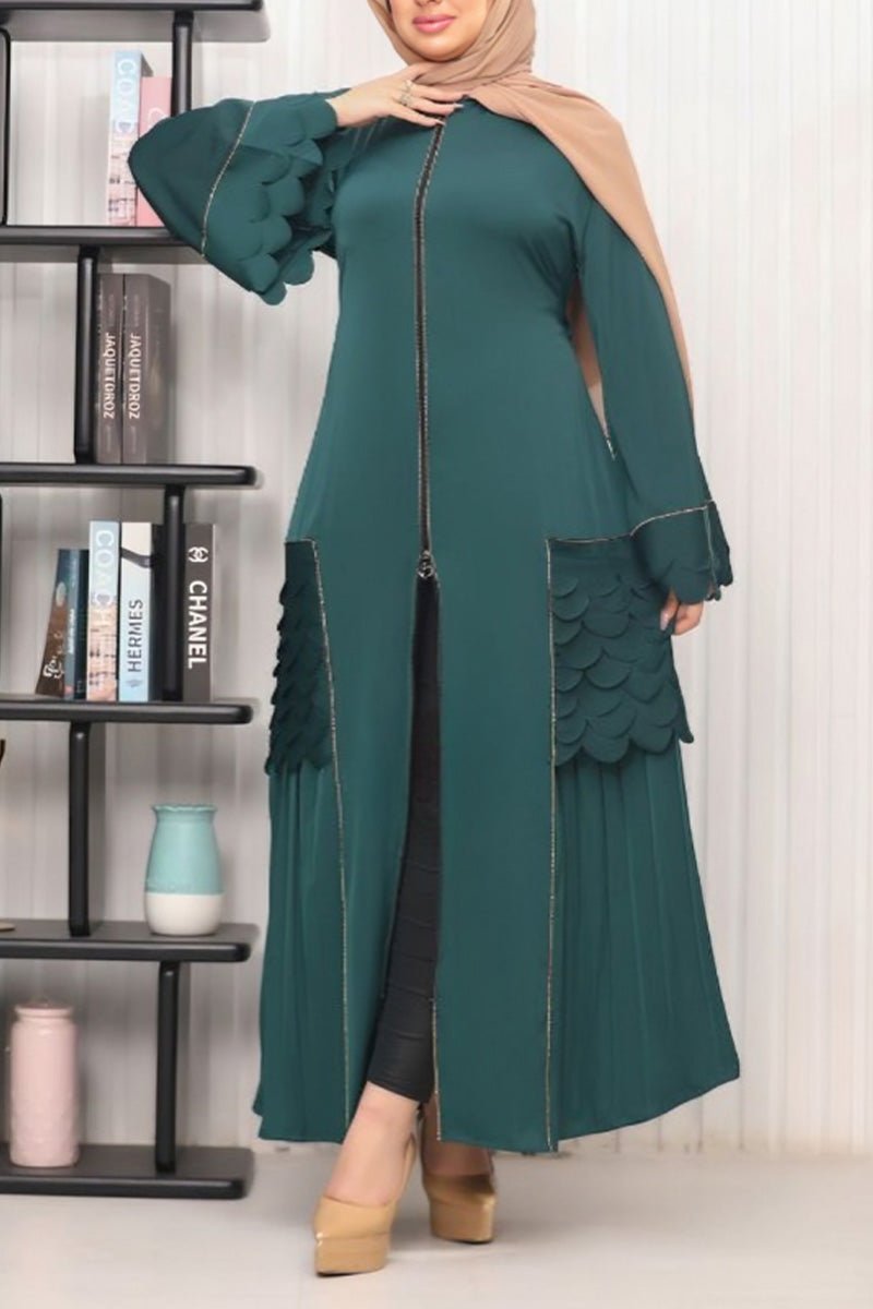 - جيوب العباية الجانبية مطعمة بطبقة قشر السمك