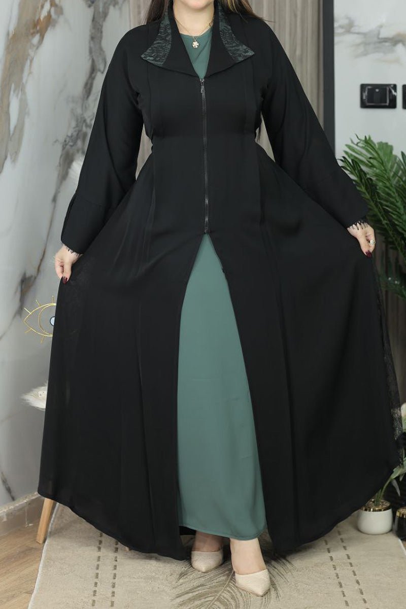 - عباية قطعتين عباية خارجية مفتوحة من الامام وتحتها تلبيسة