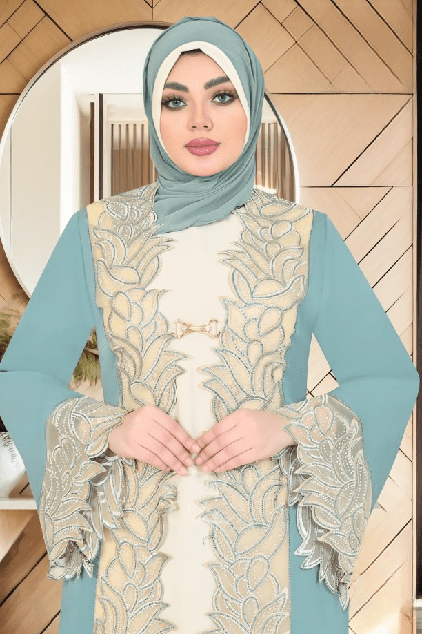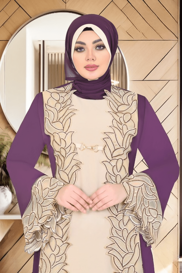 - عباية ذات اكمام واسعه وتطريزات بارزة