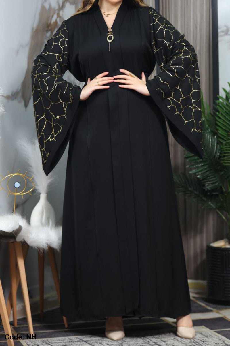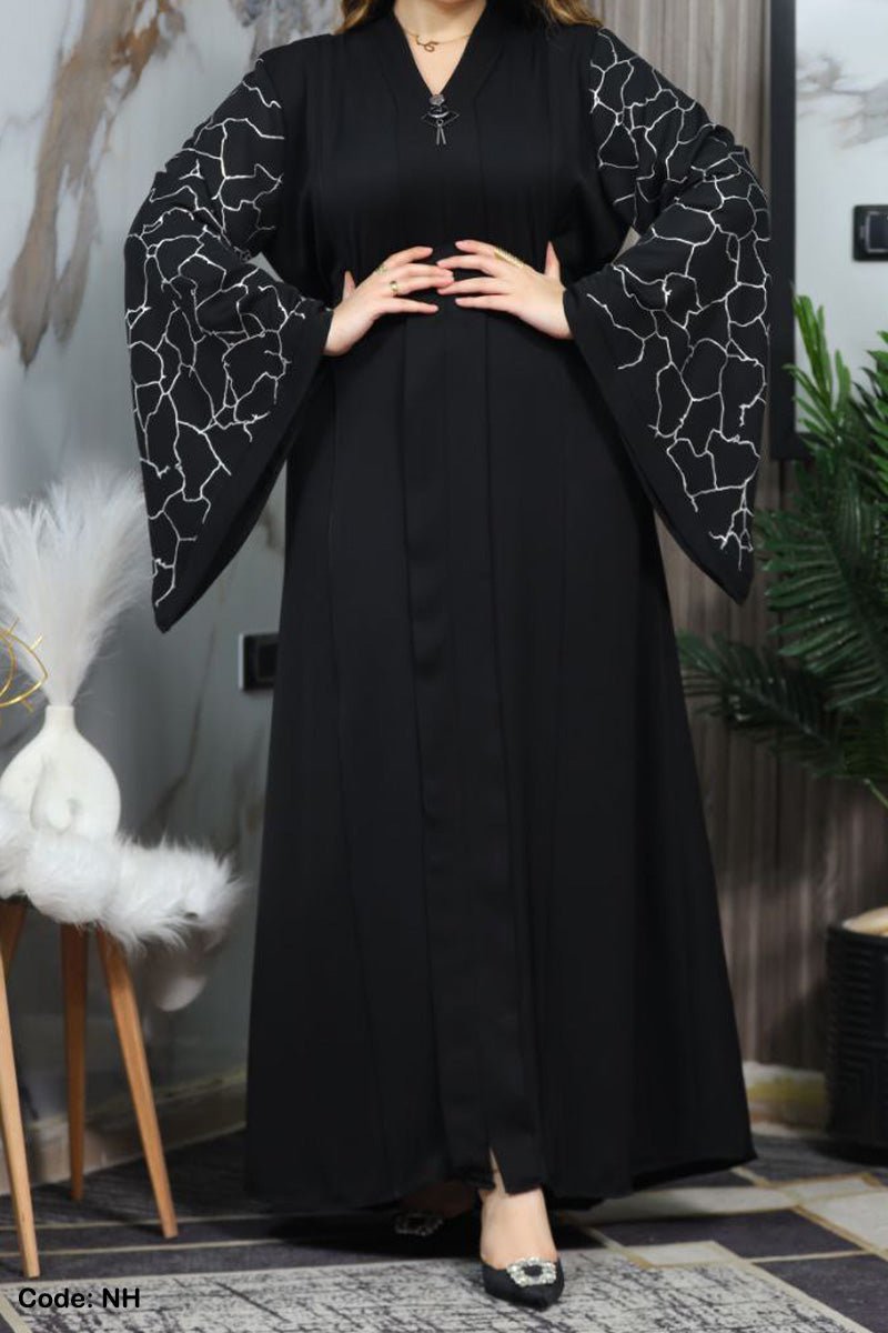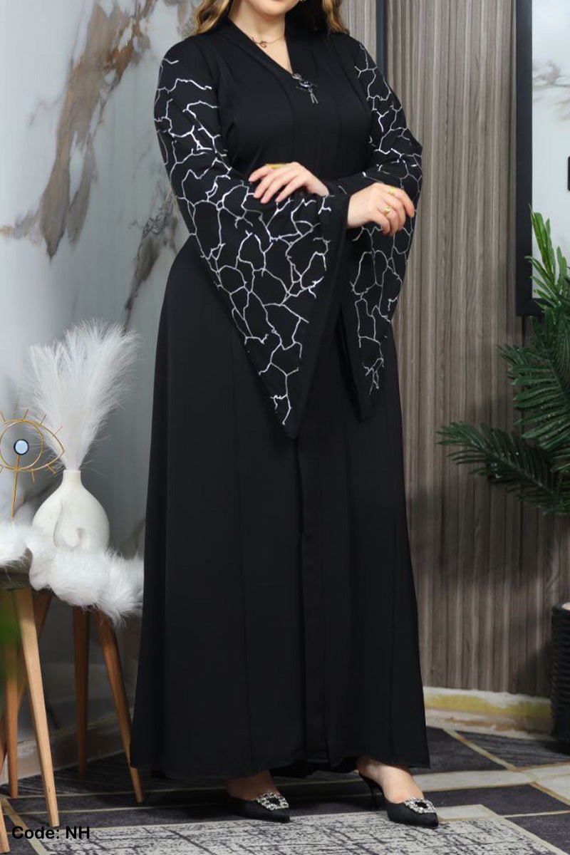- عباية ذات اكمام واسعة منقوشة بنقوش لامعة