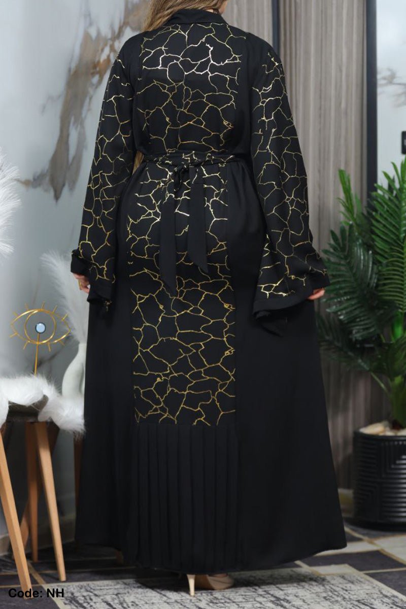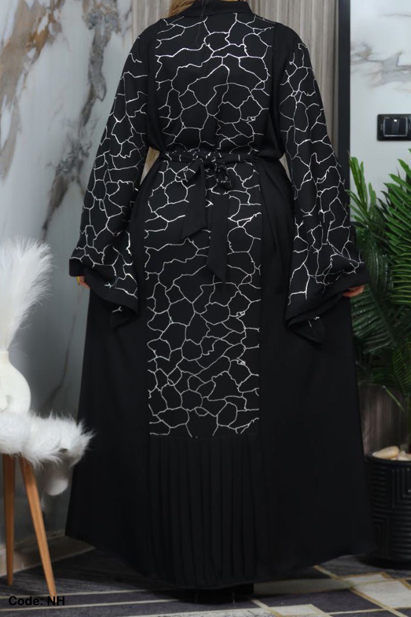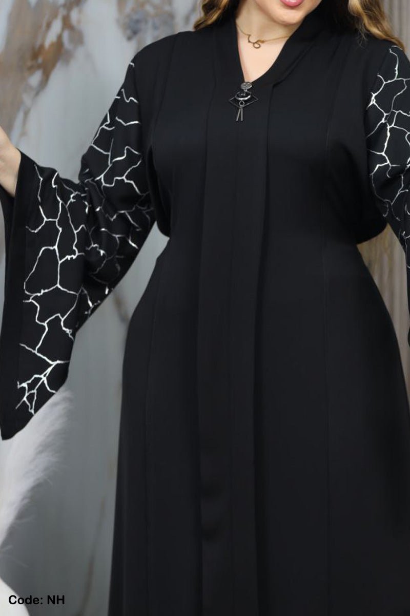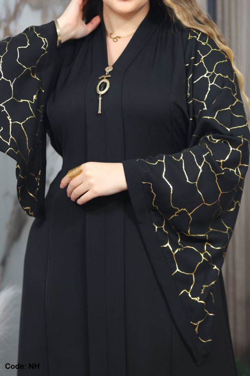 - عباية ذات اكمام واسعة منقوشة بنقوش لامعة