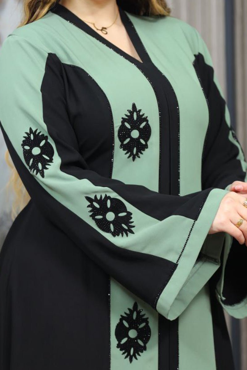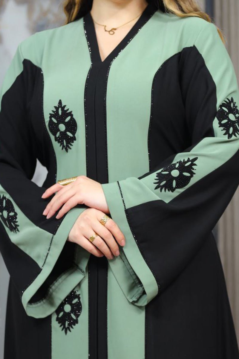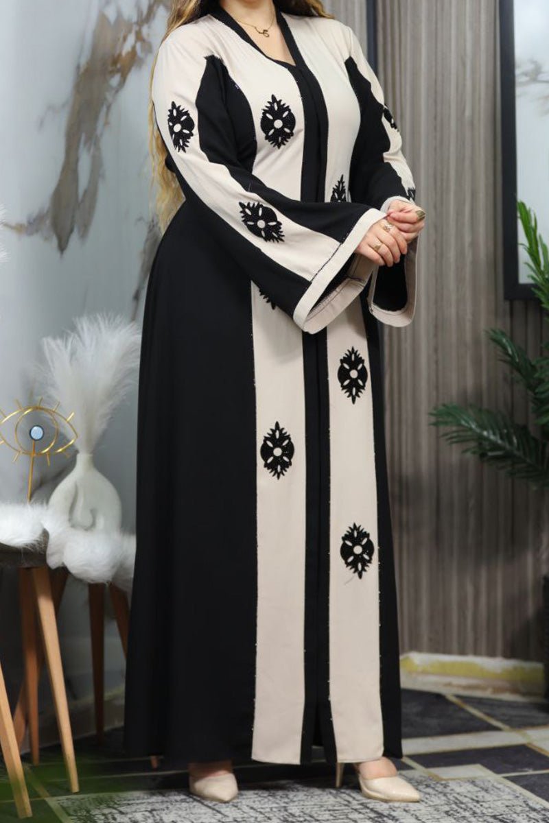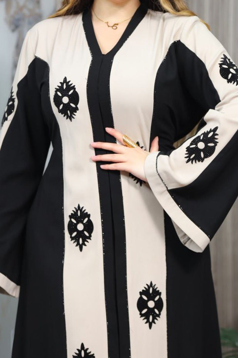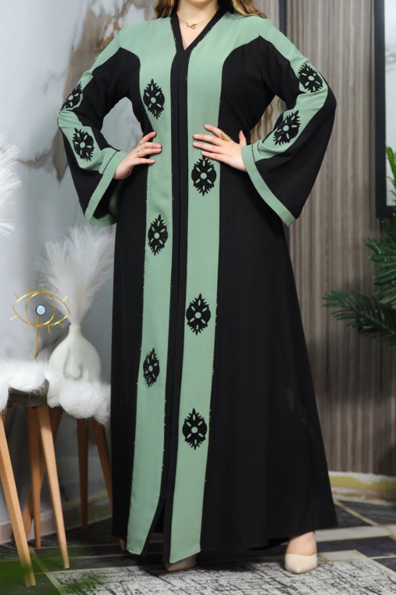- العباية مطرزة علي الصدر والاكمام وبطول العباية من الامام