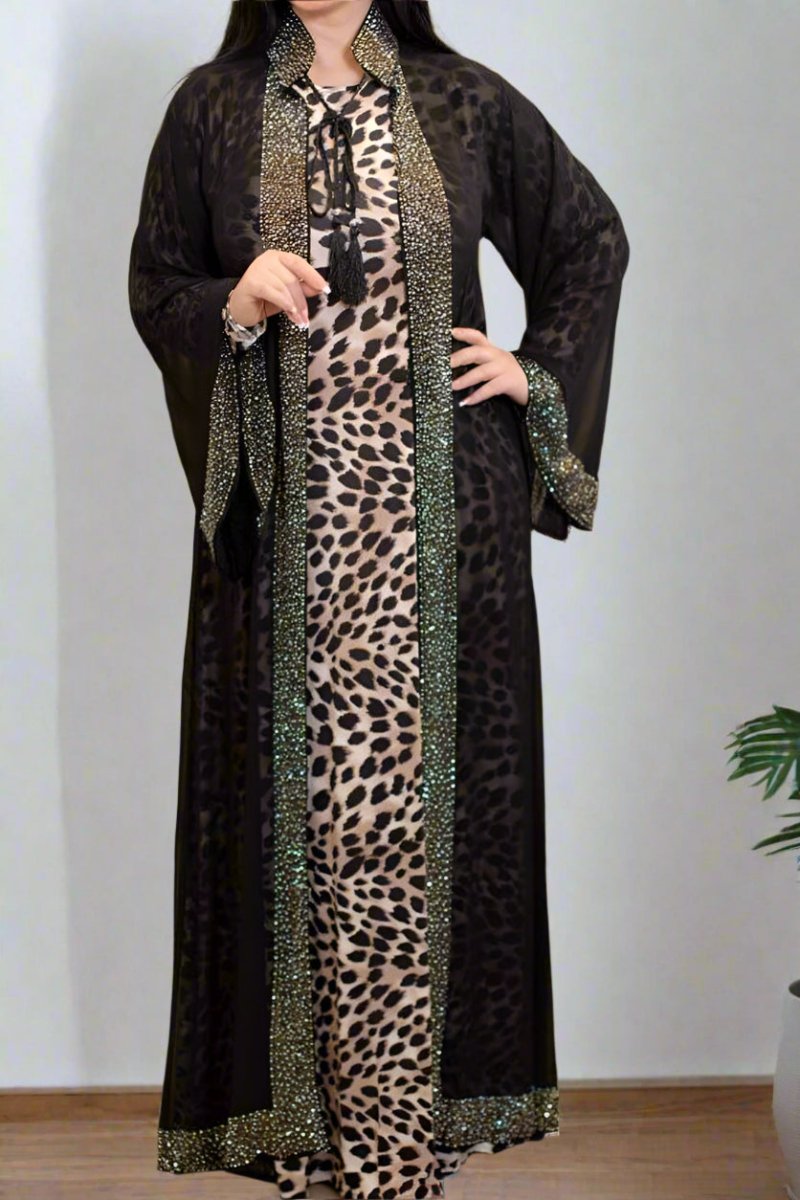• عباية مكونة من قطعتين عباية شيفون مفتوحة باكمام واسعه وتحتها بيزك بكم من الحرير