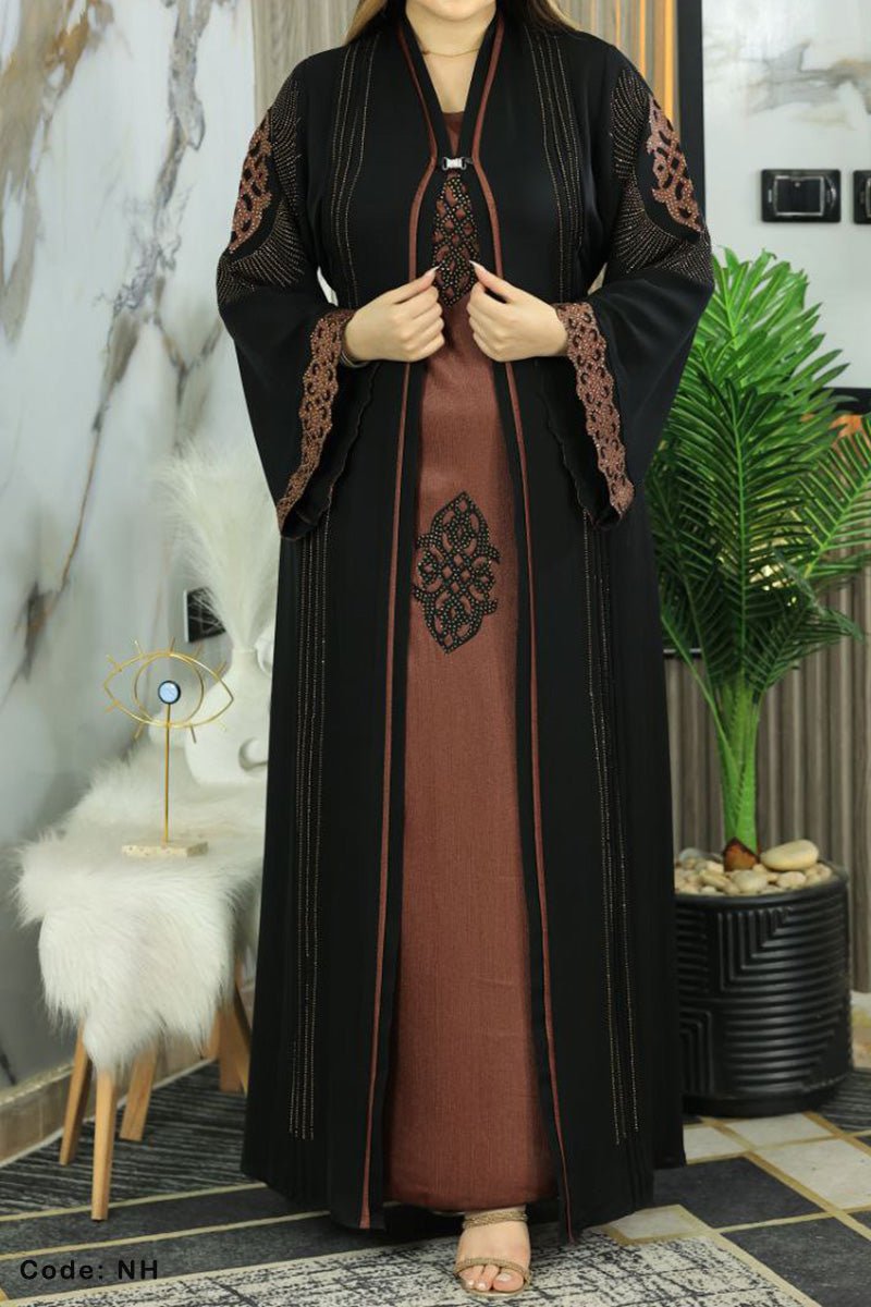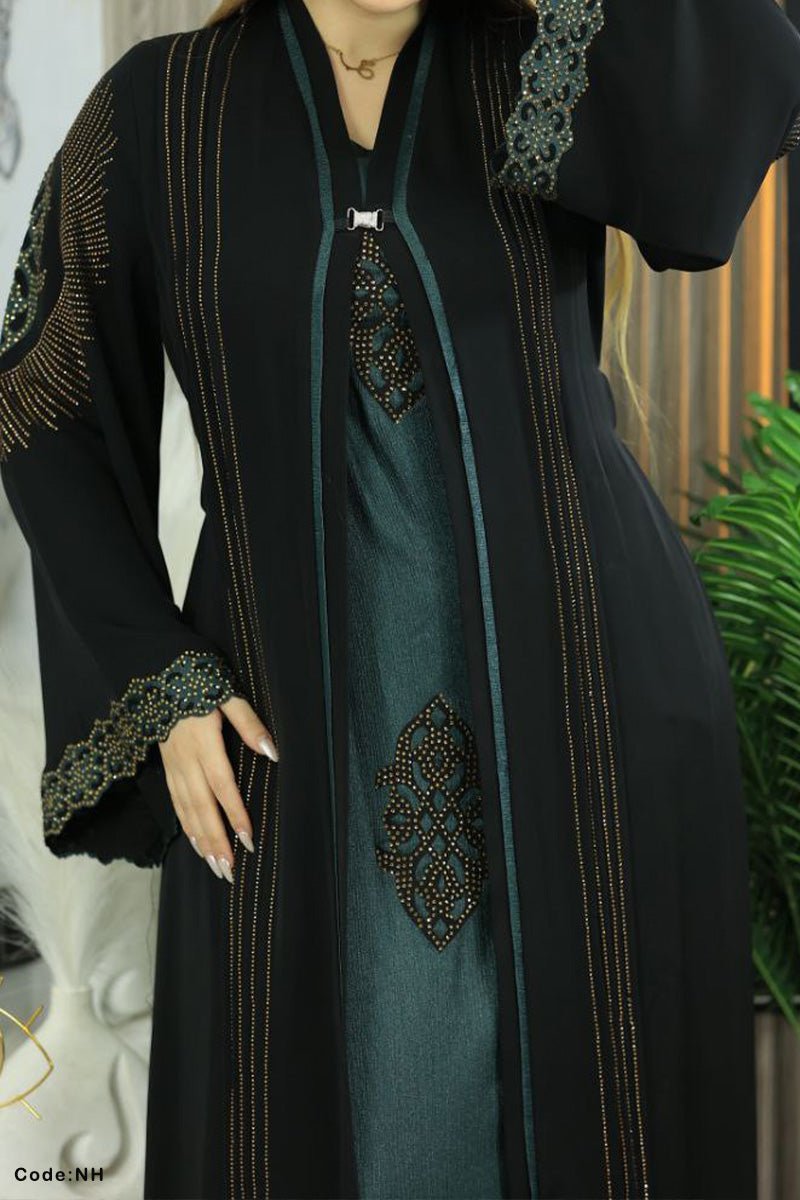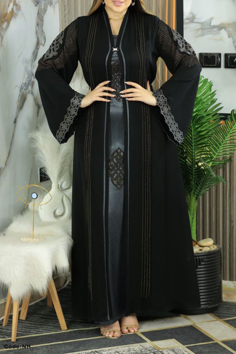 - عباية مكونة من قطعتين بيزك وعباية مفتوحة باكمام واسعة