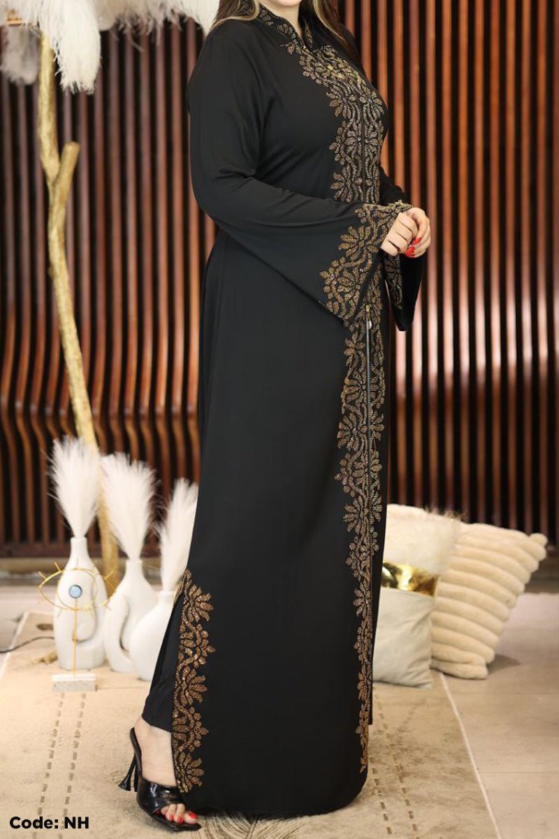 - التطريز : مطرز بخيوط ملونة واستراس عالية الجودة