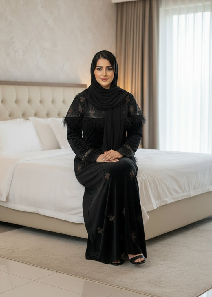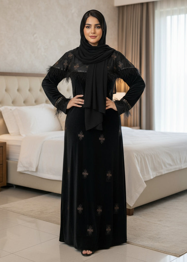 جلابية ريشة - قطيفة مخمل ناعم شتاء 2025