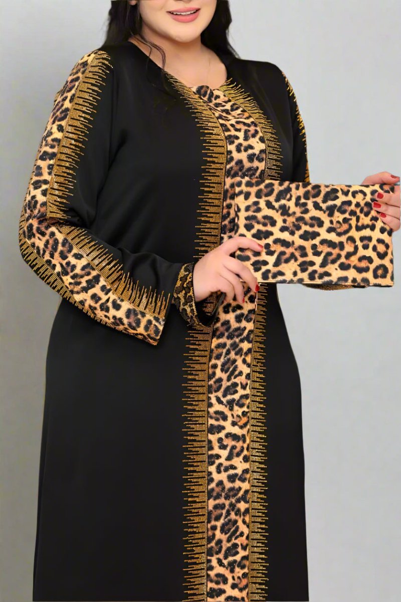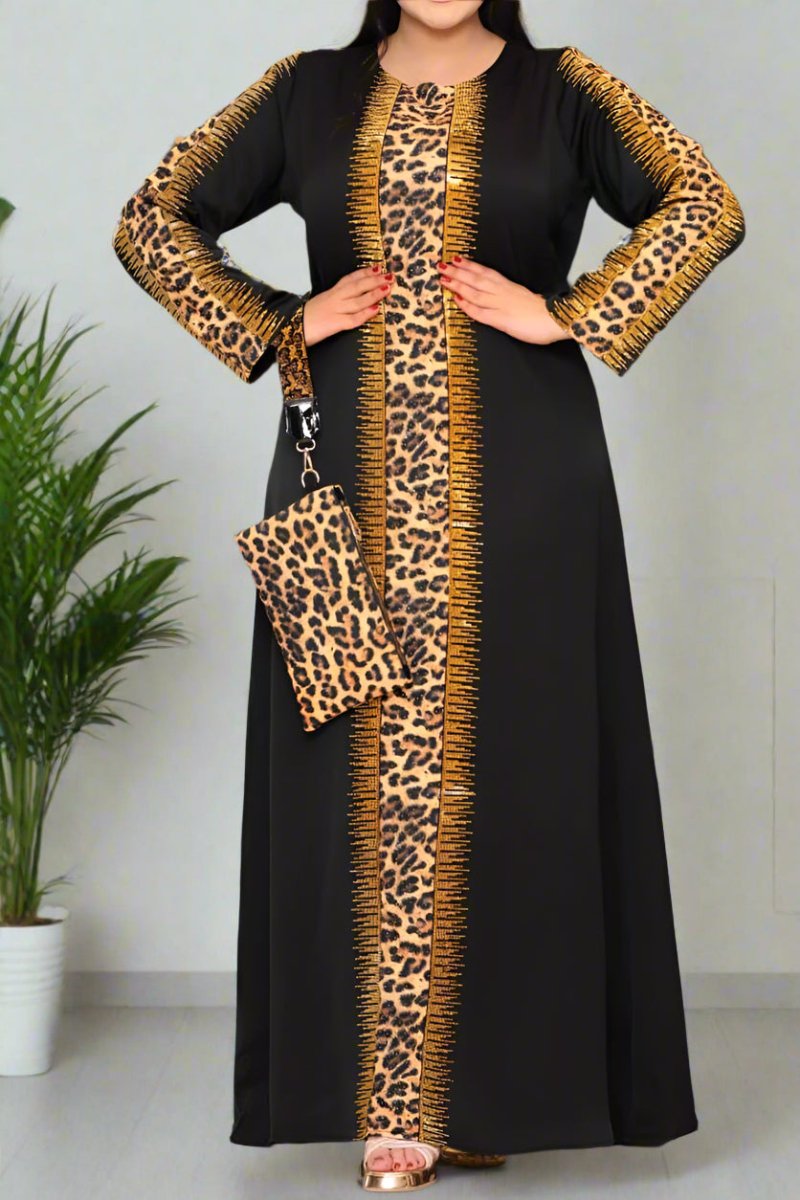 • عباية مكونة من قطعتين عباية حرير مطعمة بالتايجر وبورتوفيه تايجر