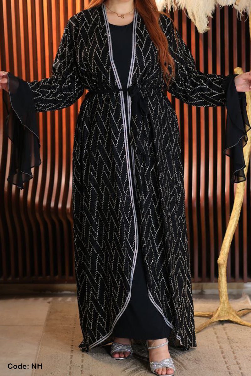 - العباية المفتوحة مطرزة بالكامل بنقوشات بارزة
