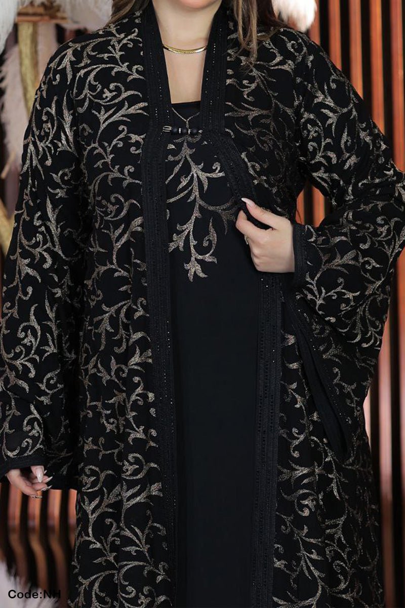 - التطريز على العباية بالكامل والاكمام والظهر