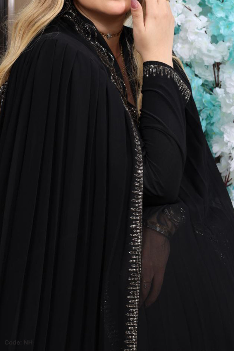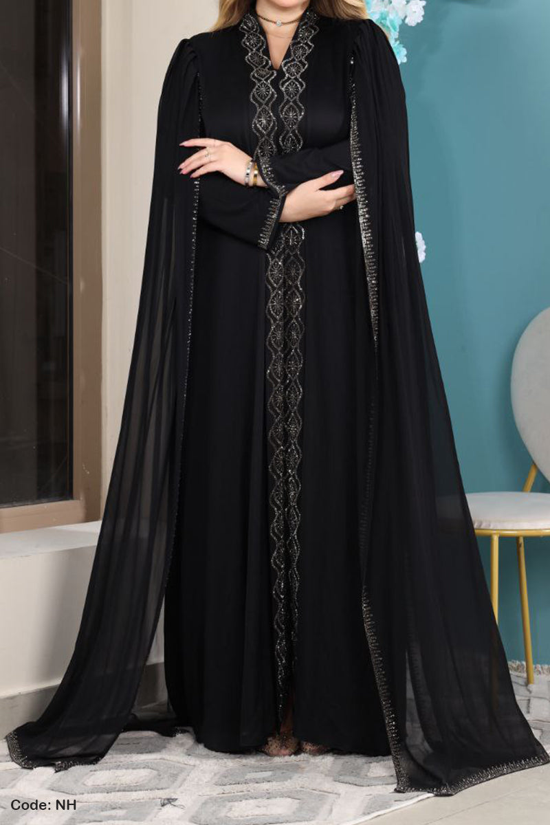 - التطريز علي الصدر والاكمام وبطول العباية من الامام وعلي الوشاح ايضا