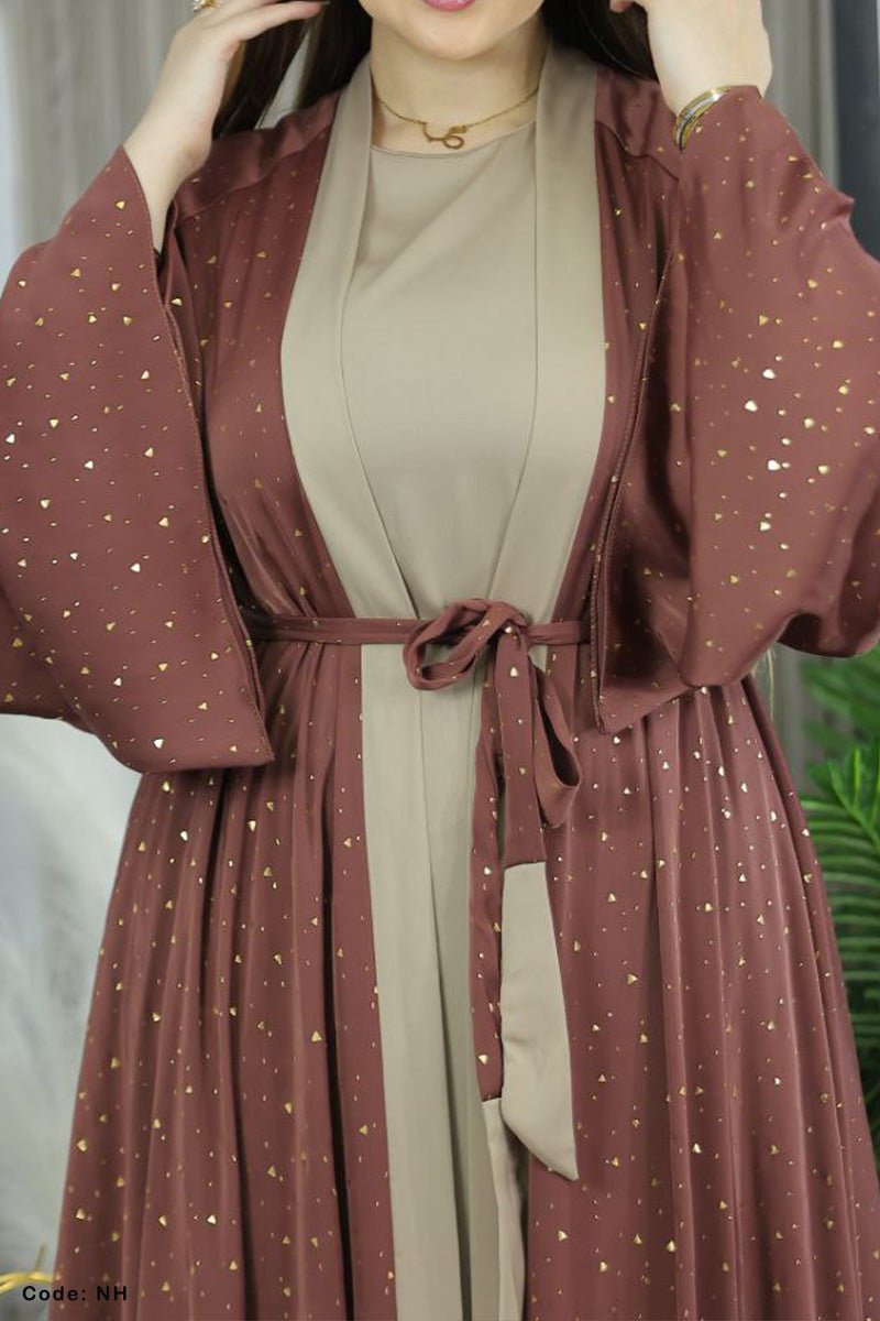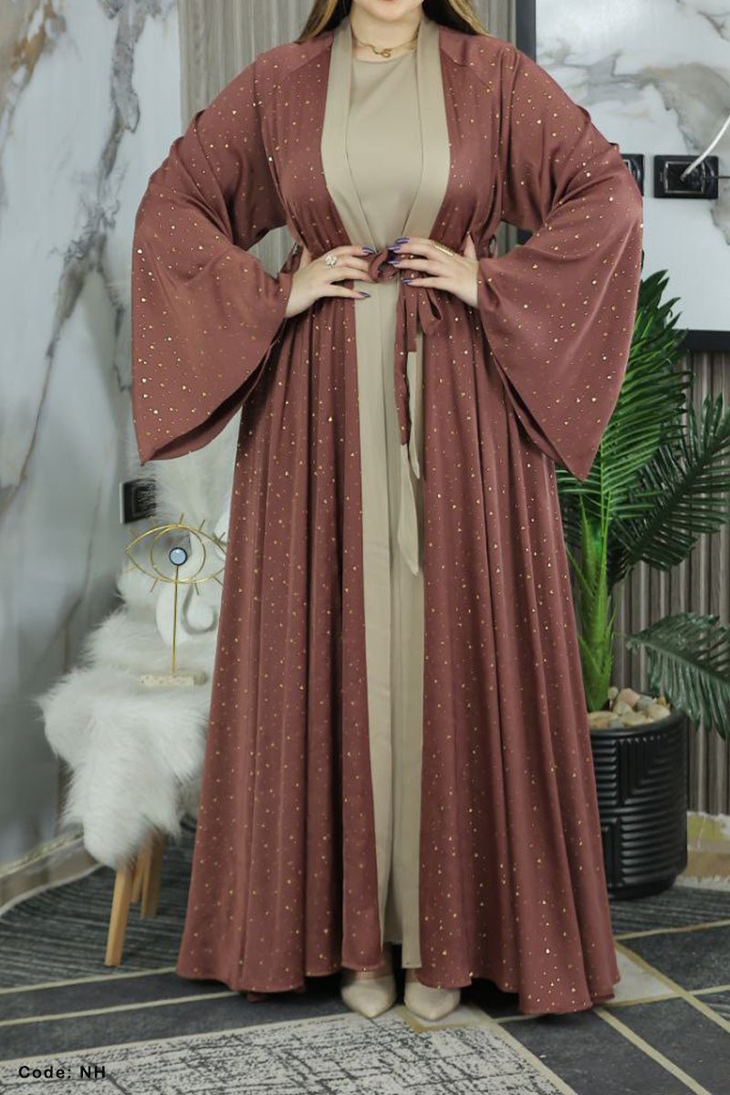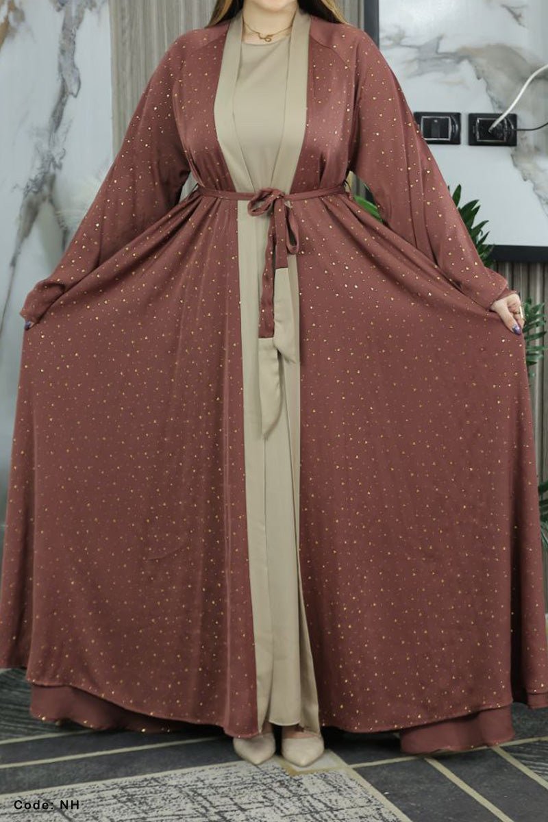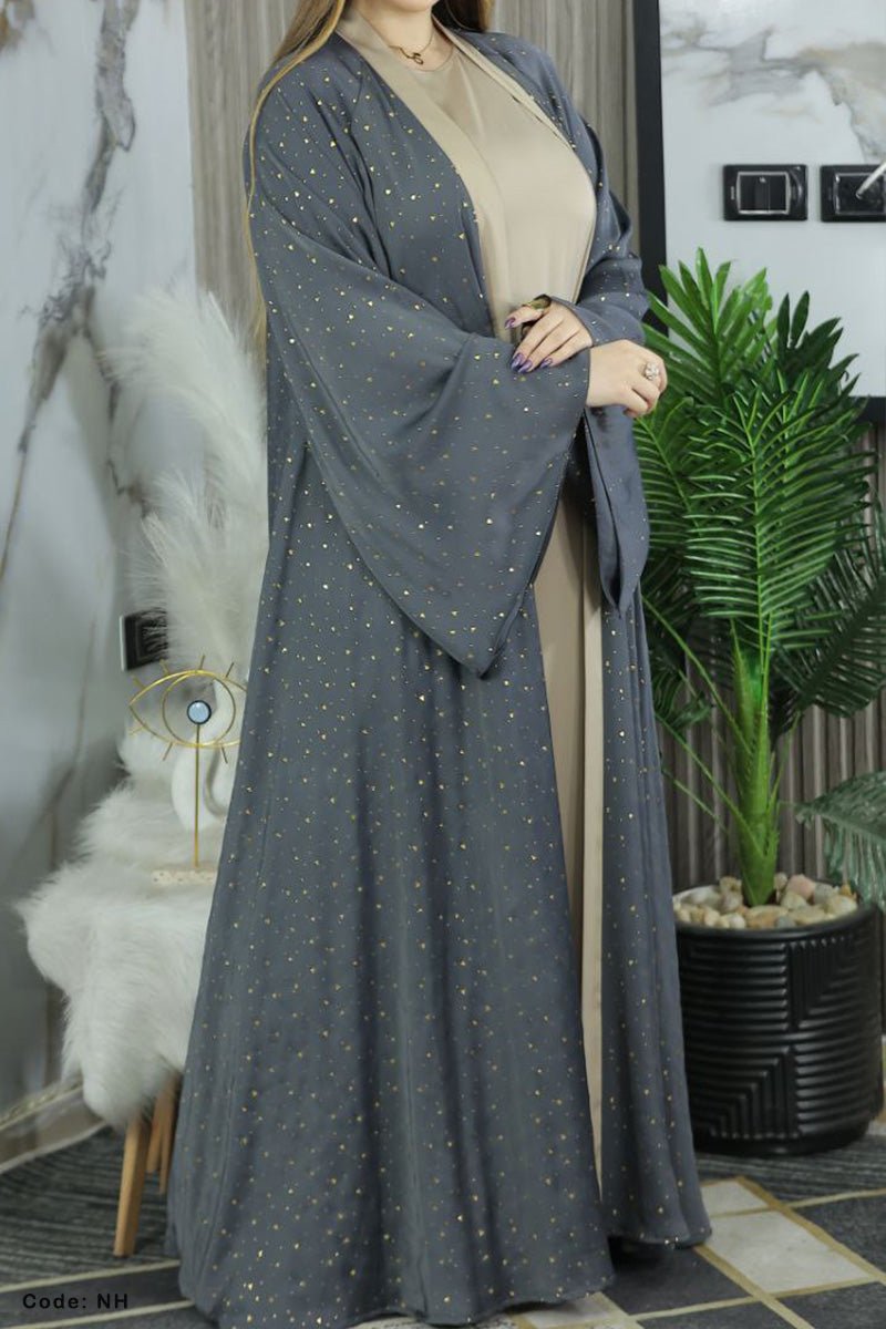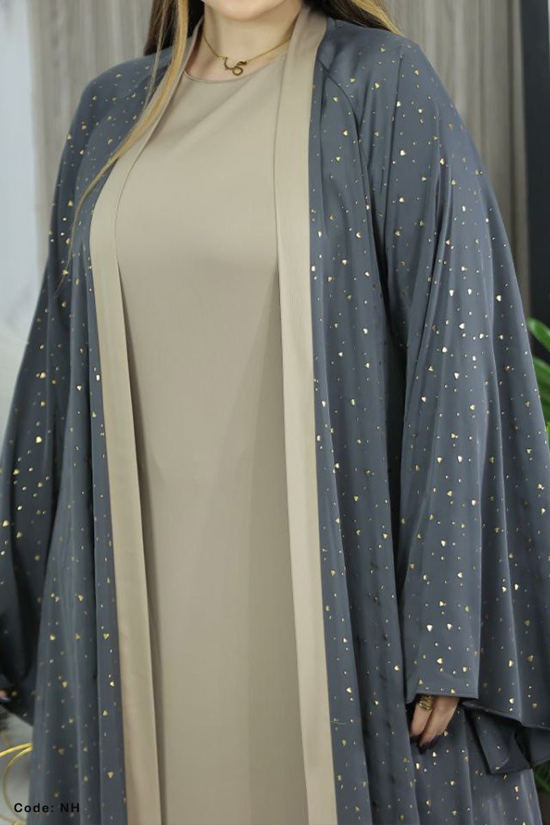 - عباية قطعتين فخمة مكونة من بيزك واسع وعباية مفتوحة باكمام واسعة