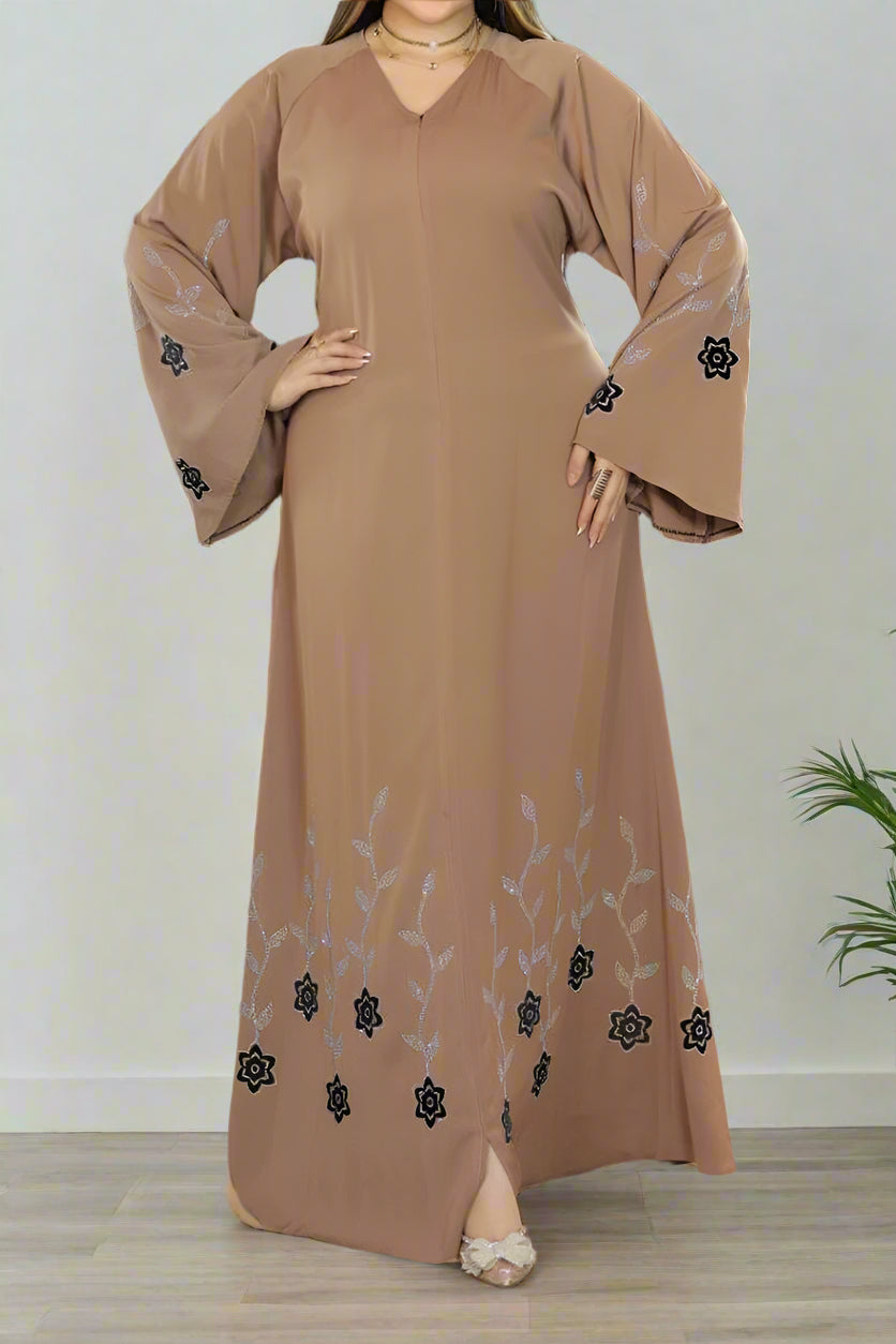 • التطريز علي الاكمام والظهر ونهاية العباية