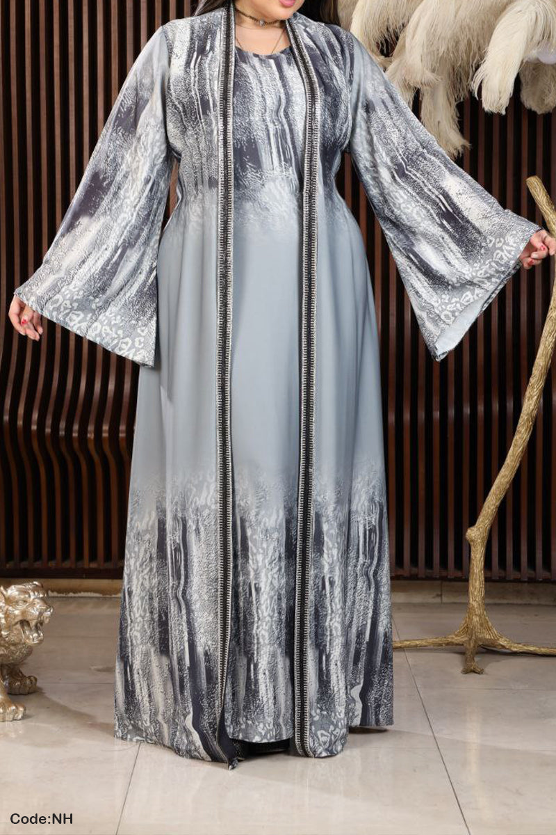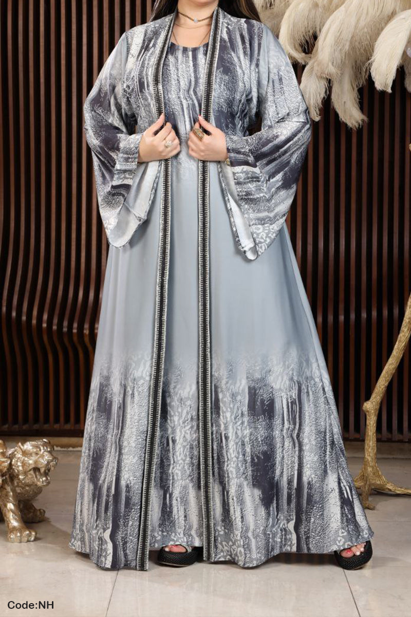 - العباية بتصميم انيق مكونه من قطعتين (بيزك وعباية مفتوحة)