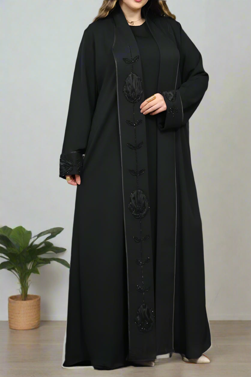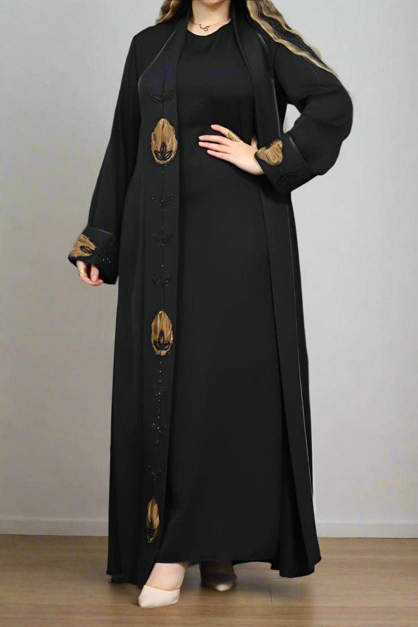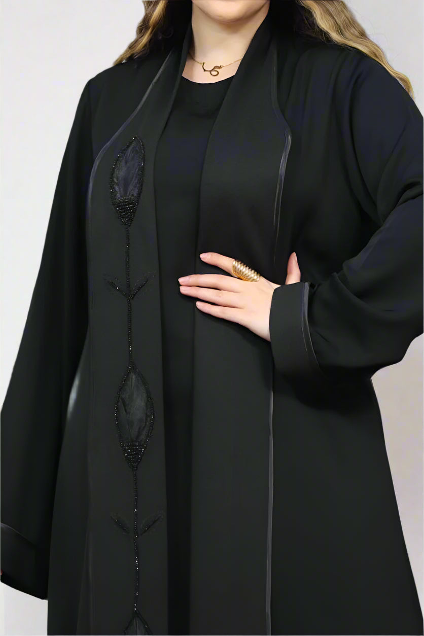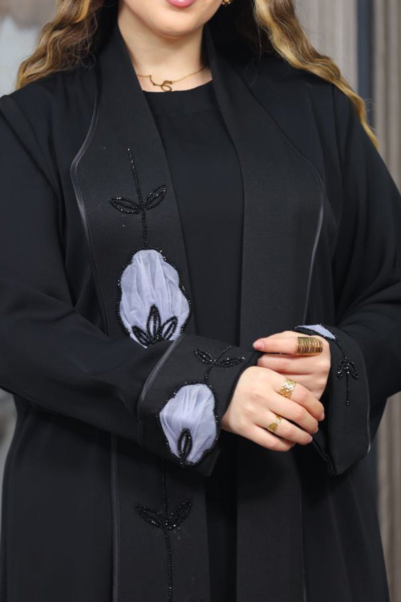 - عباية مكونة من قطعتين بيزك وعباية بكم مفتوحة من الامام
