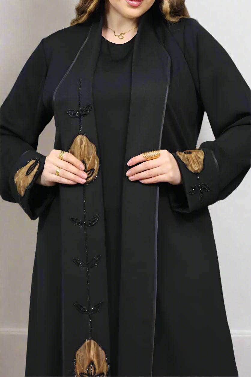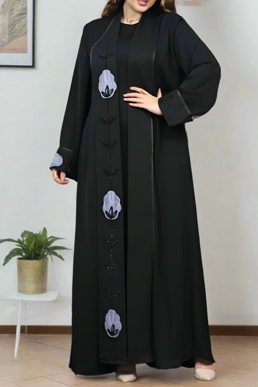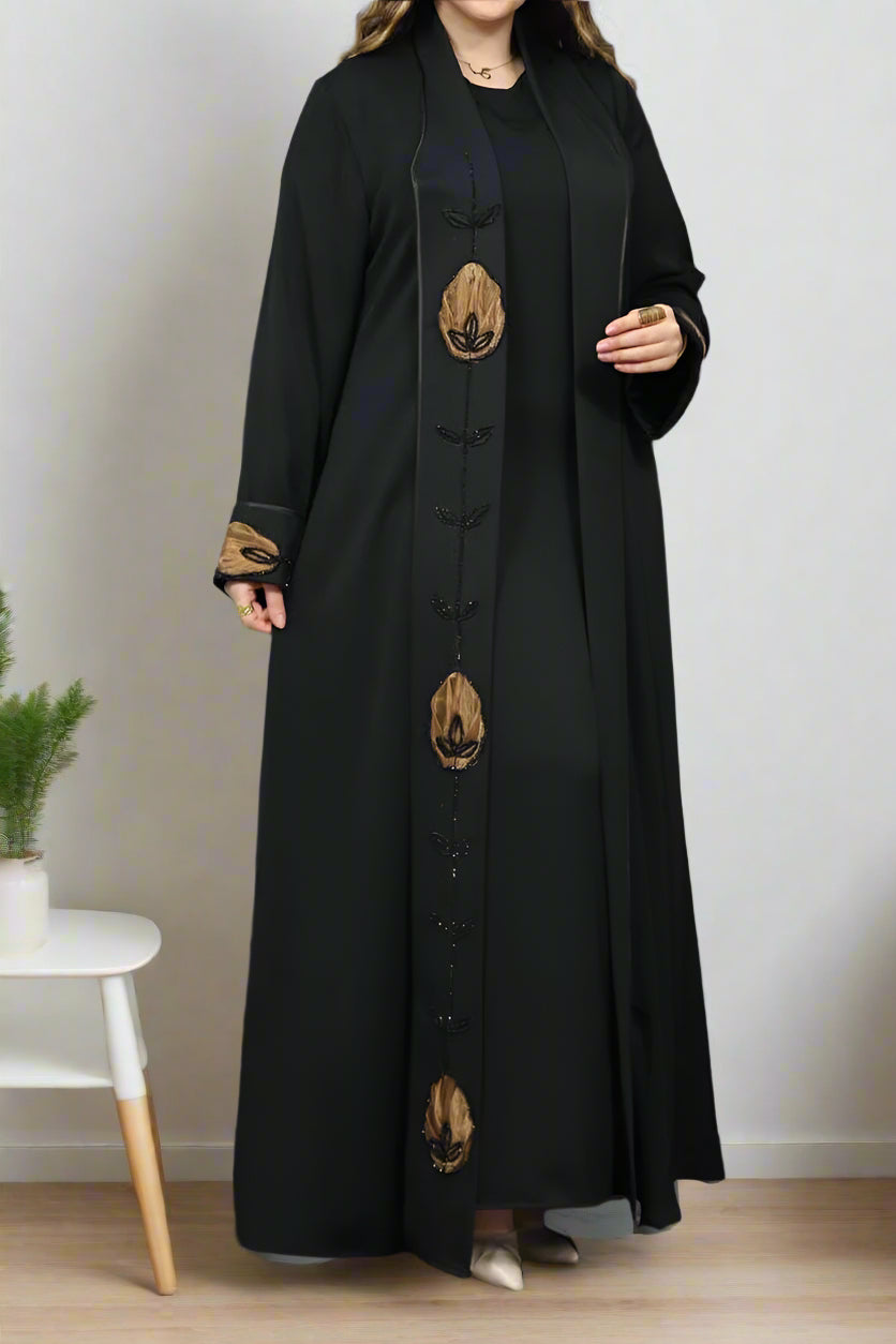 - عباية مكونة من قطعتين بيزك وعباية بكم مفتوحة من الامام