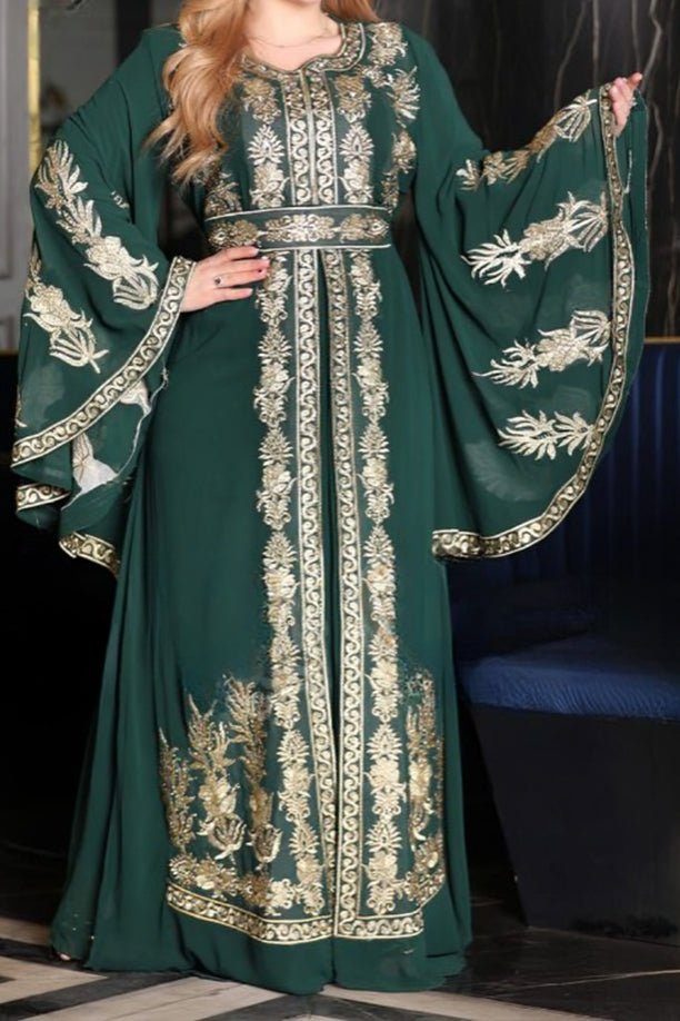 - الأكمام الواسعة مزينة بتطريز أنيق على الأطراف